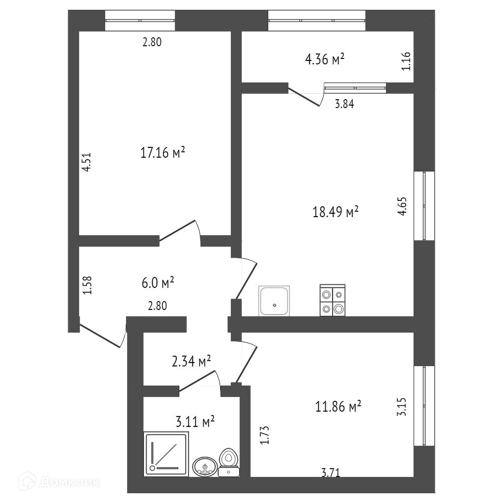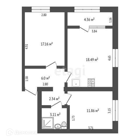 Общая площадь 63.3 м2