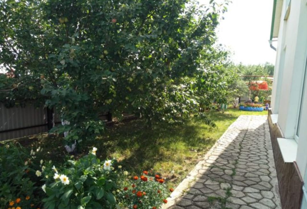 На участке есть сад с плодовыми деревьями : яблони, груши, сливы,вишня, калина, малина,рябина, крыжовник.