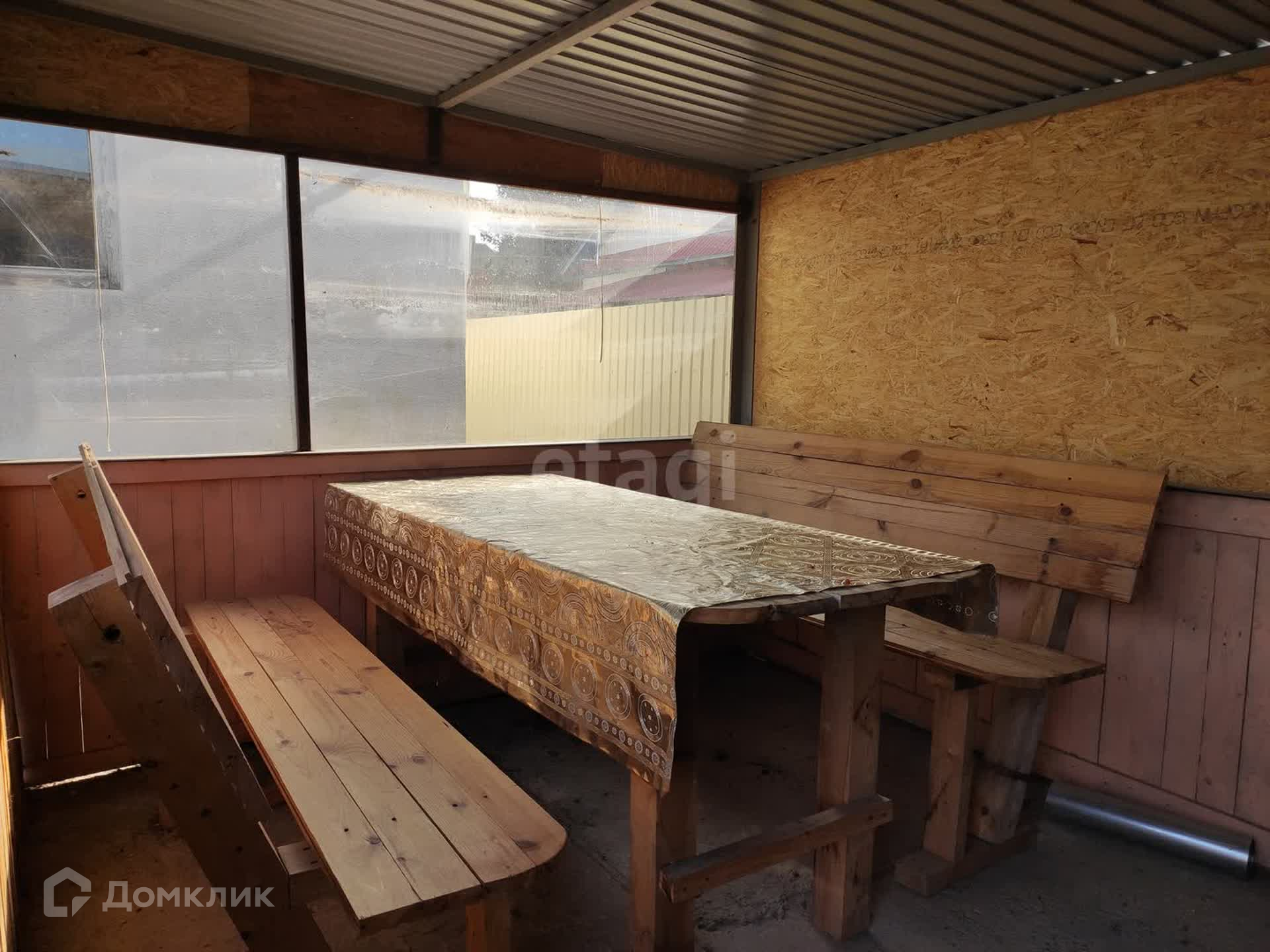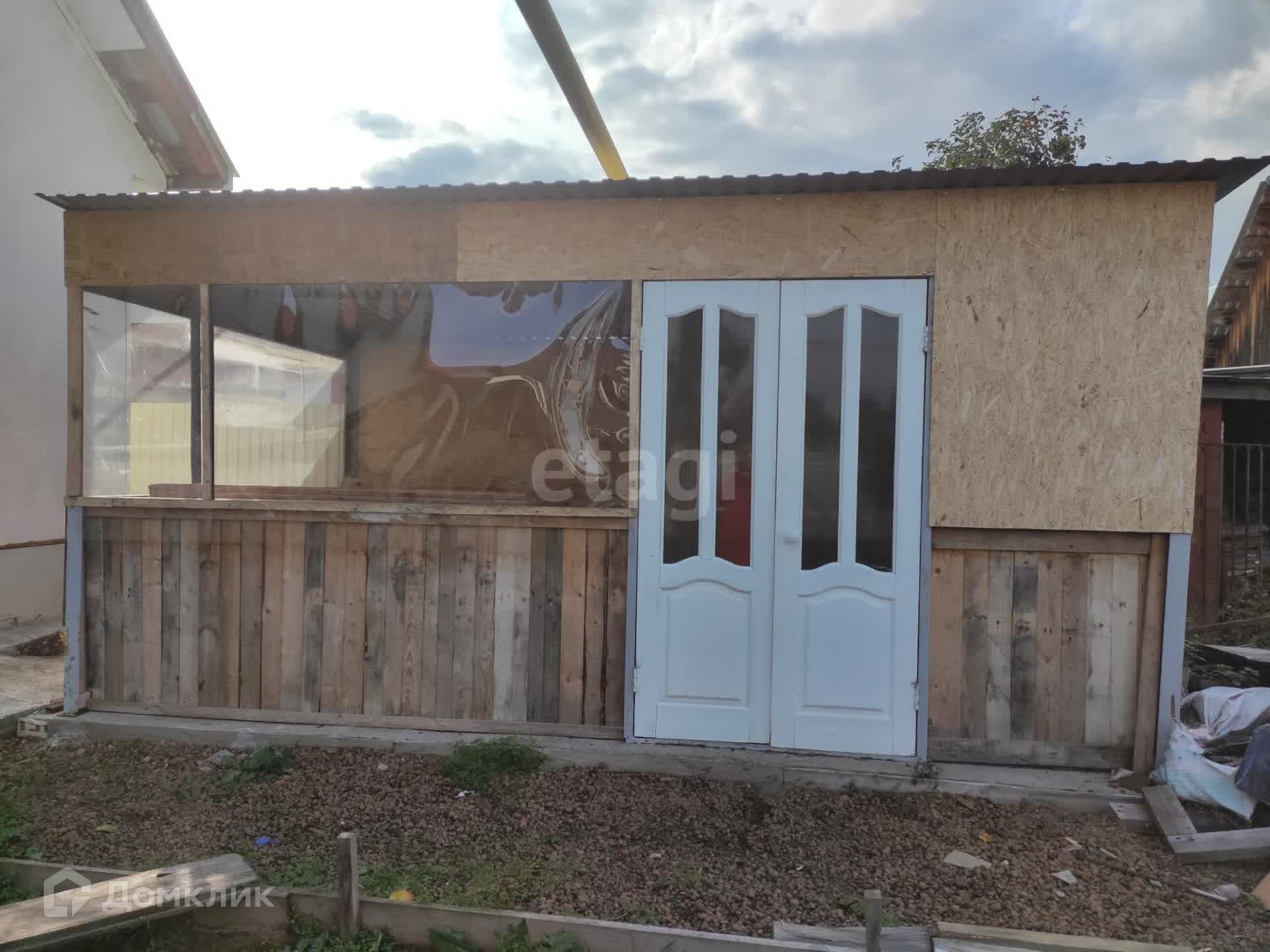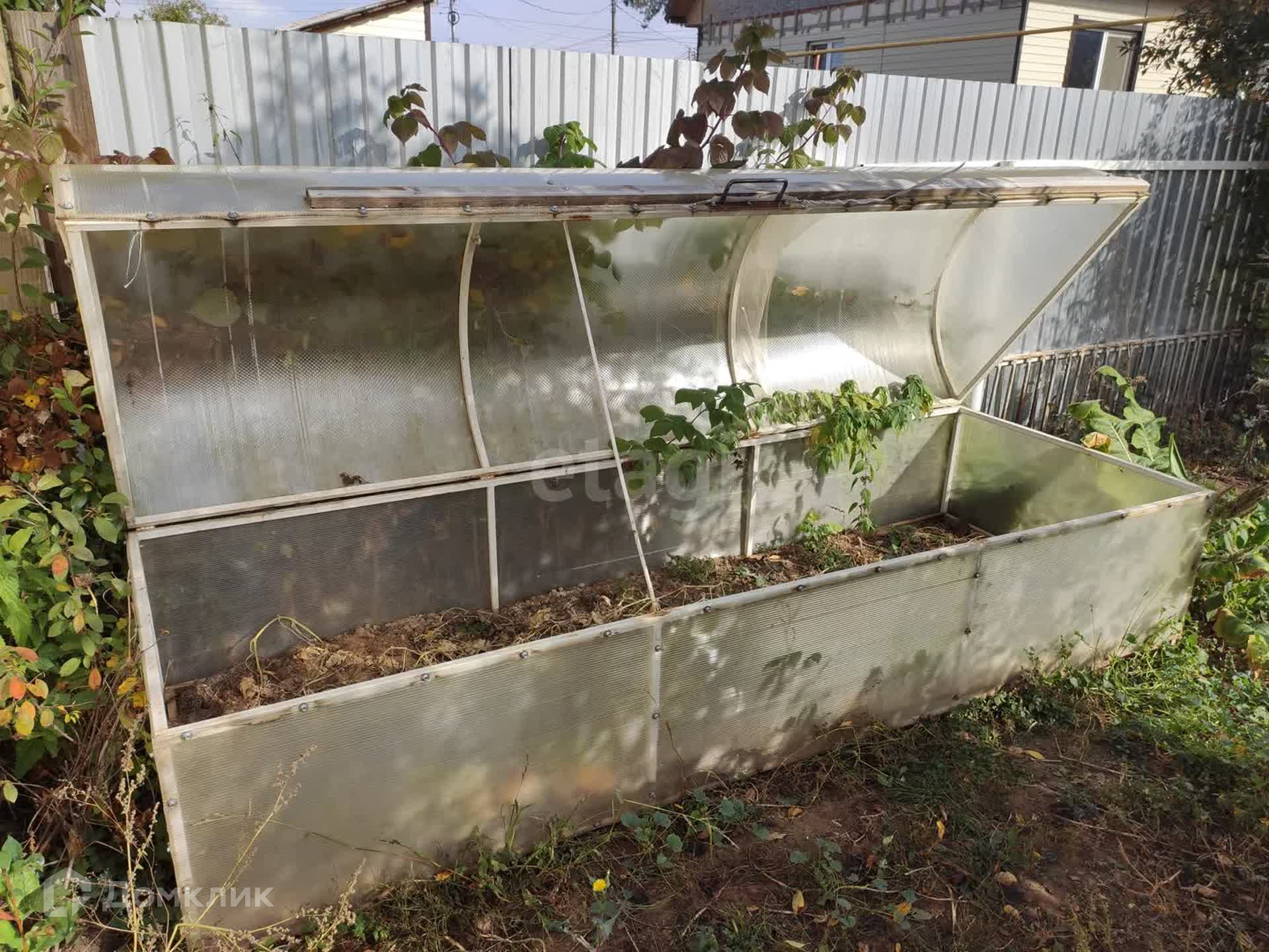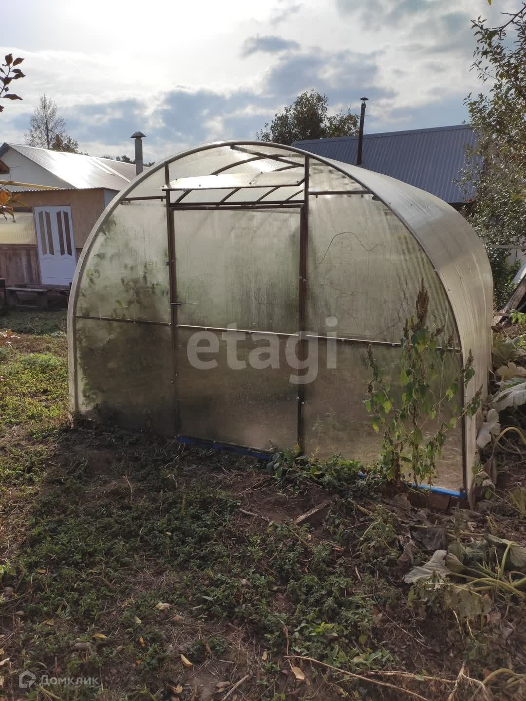 Имеется гараж с воротами на пульте, хоз.блок и стены под крышей для бани. Есть небольшой огород, теплица, огуречник. Имеется крытая беседка для отдыха и жарки барбекю. 5 соток земли.