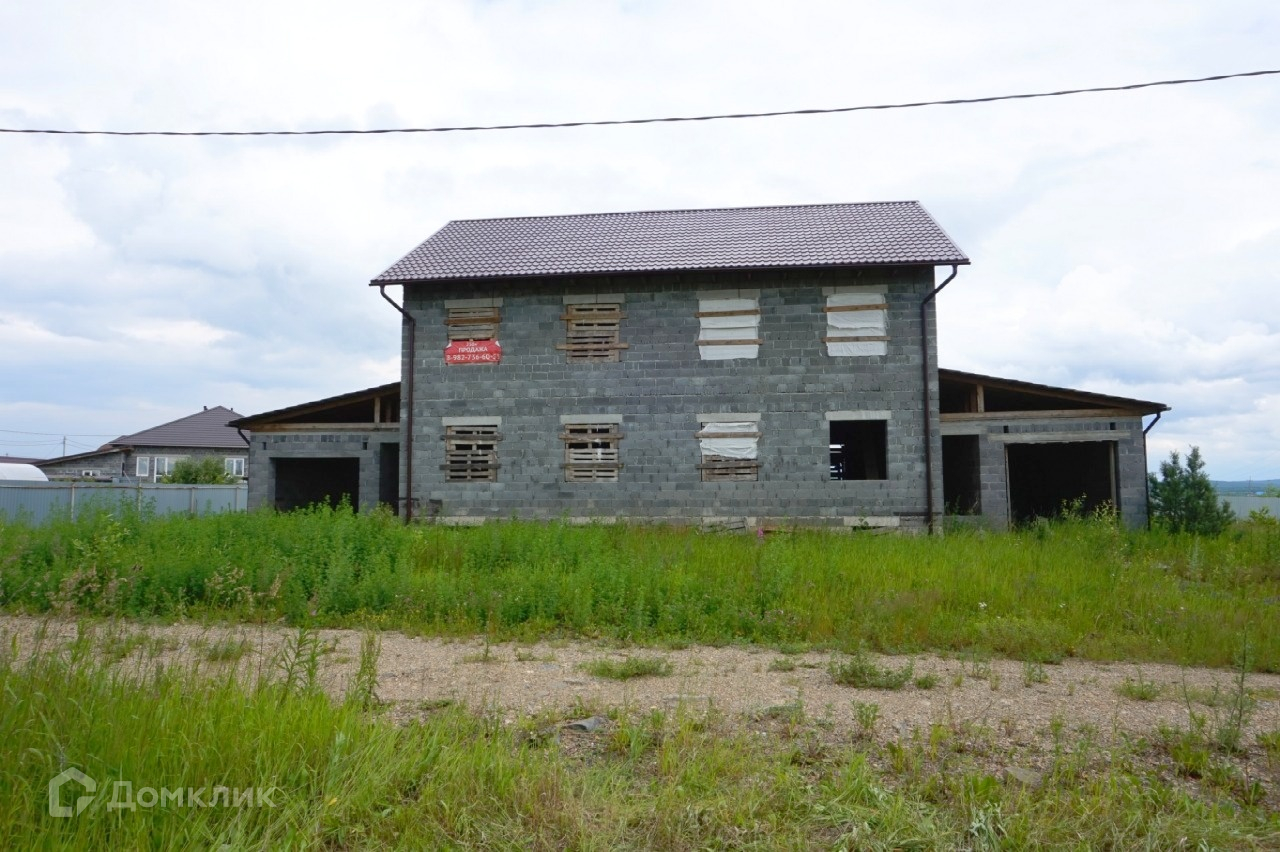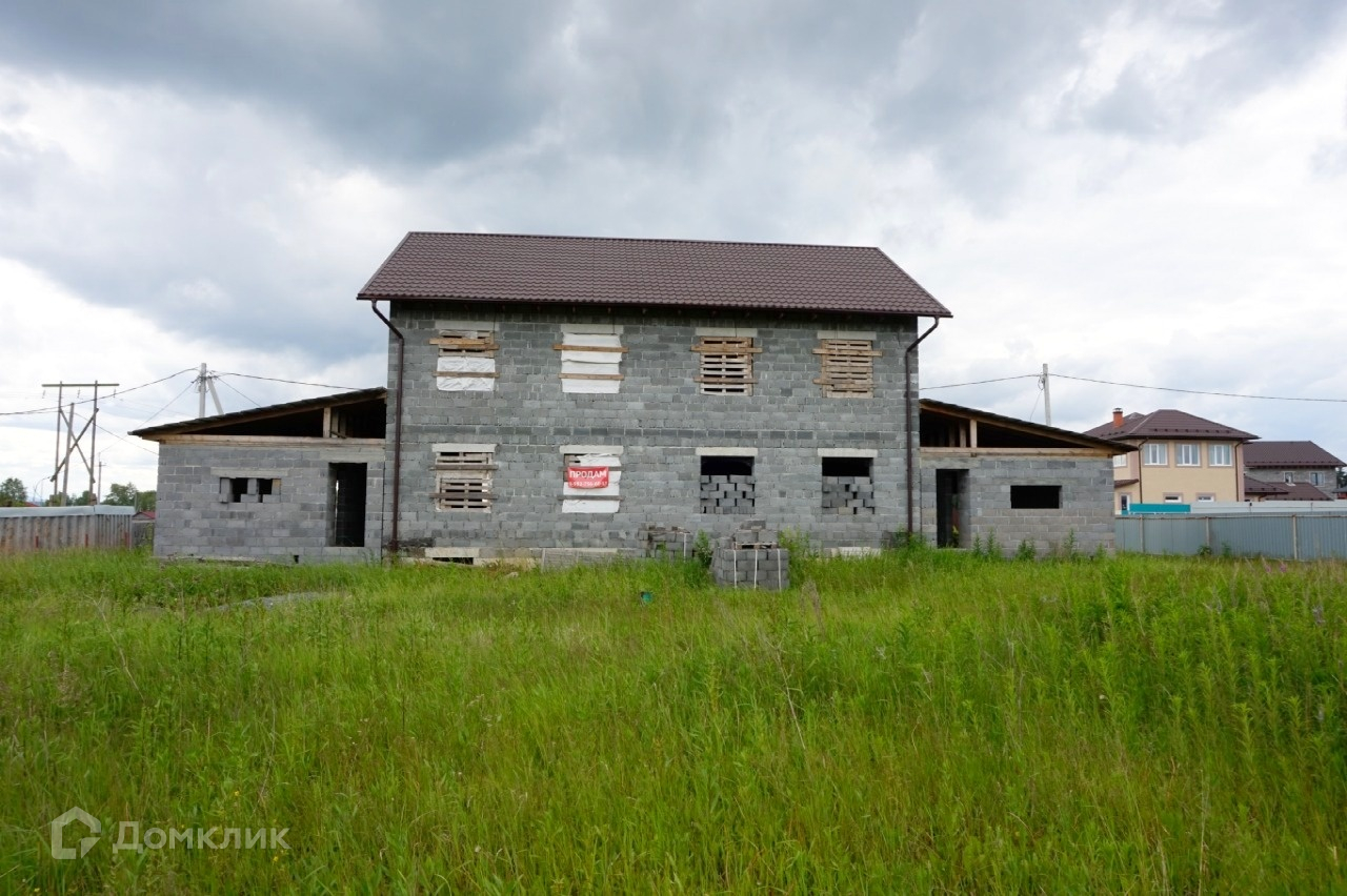 Строился на 2 семьи, посередине стена, разделяющая дом на равные части. Отдельный вход и гараж с каждой стороны. Можно объединить в один большой. Без отделки.