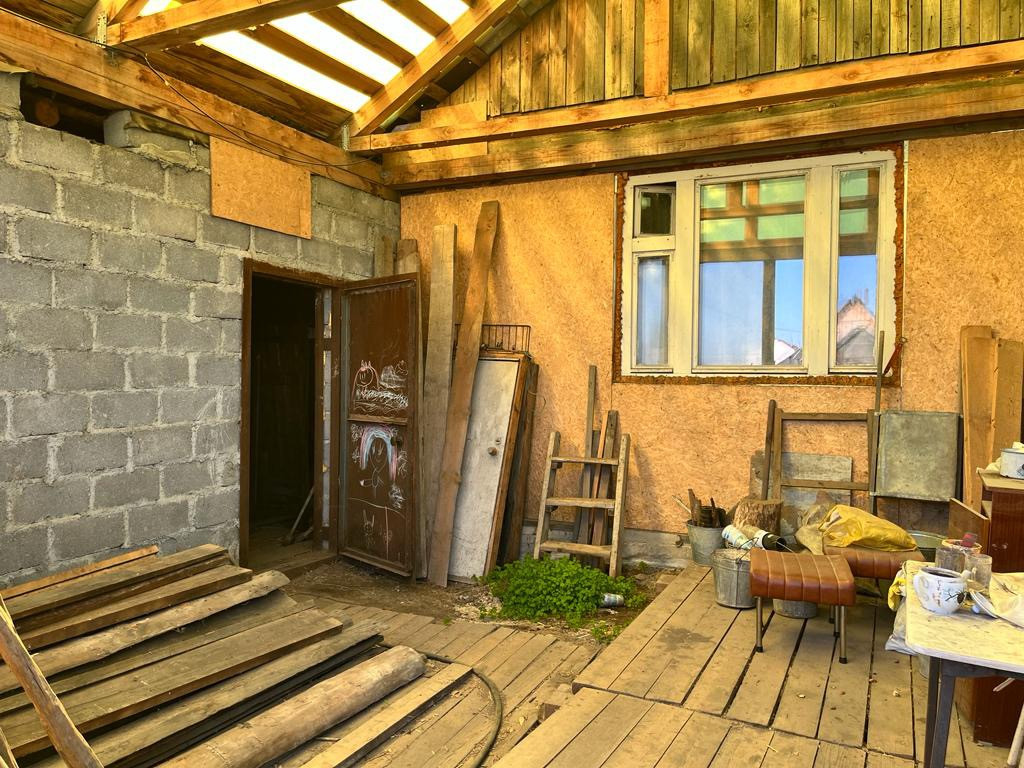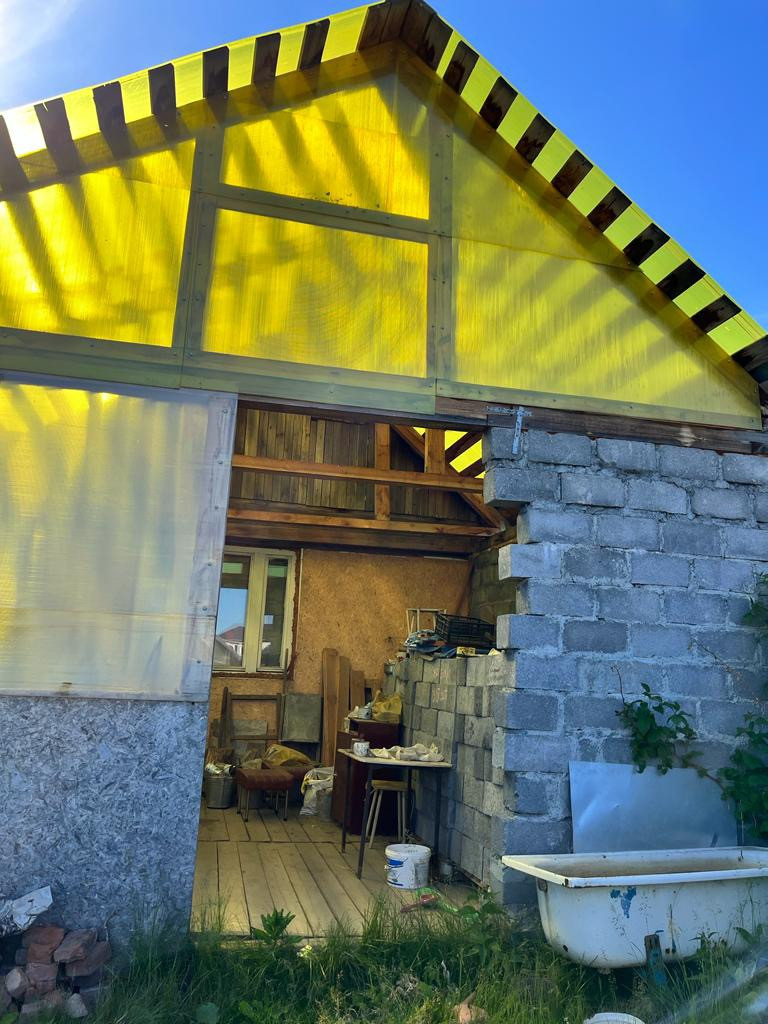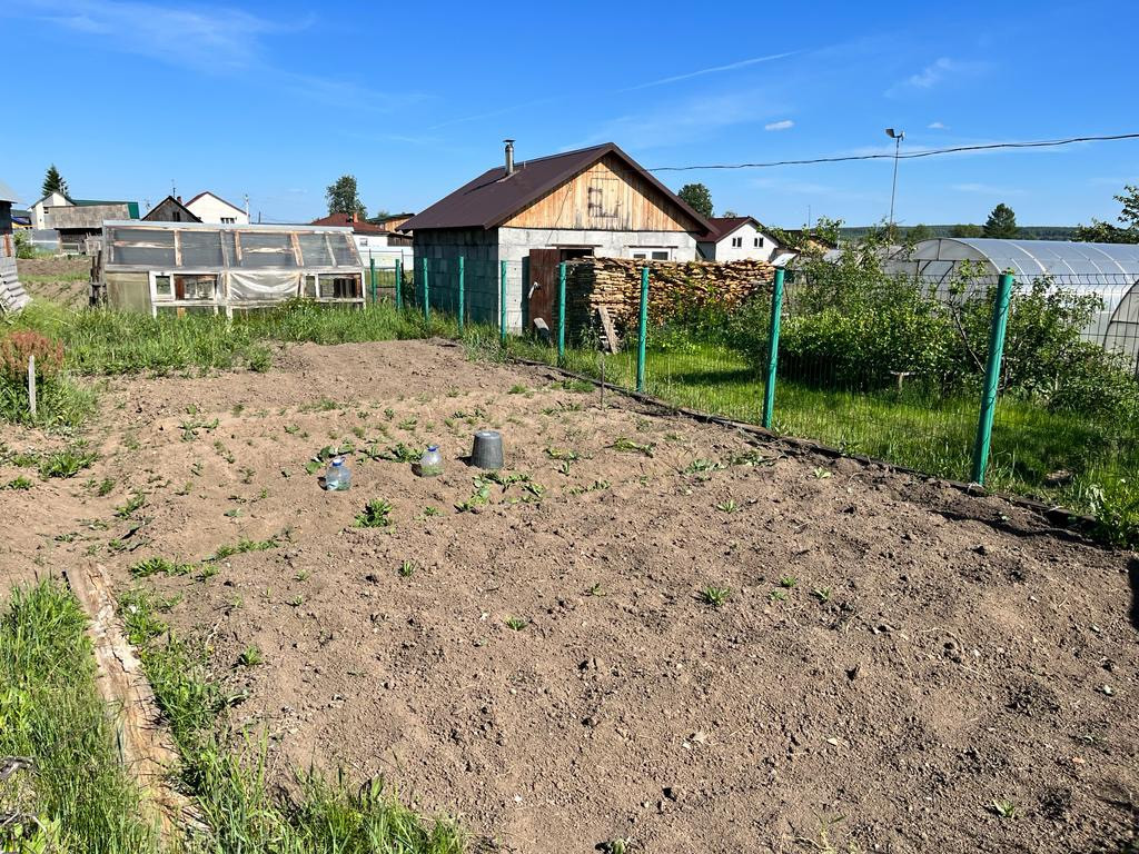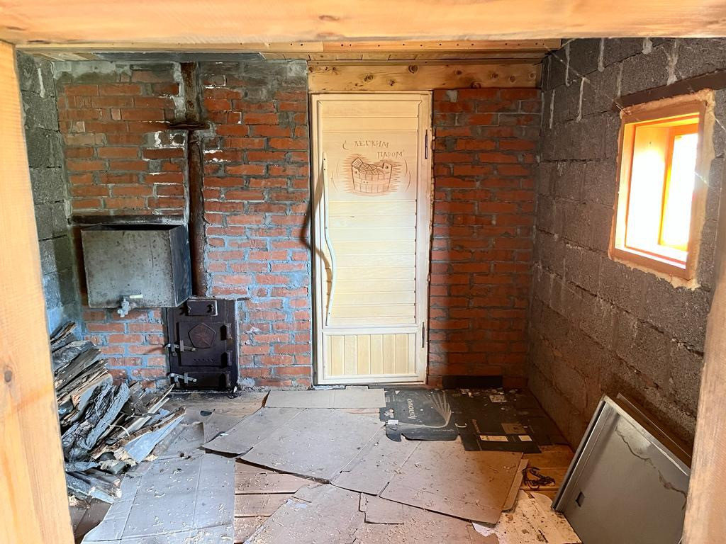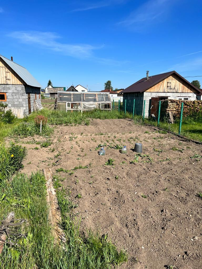 Огород 10 соток (обработан), есть две теплицы. На участке новая баня из пеноблока, без внутренней отделки, печь и котел уже смонтированы.