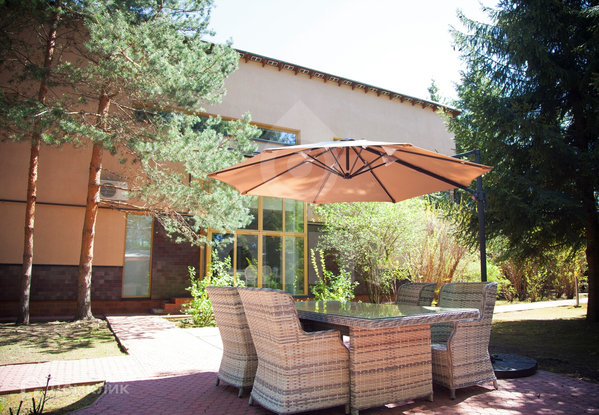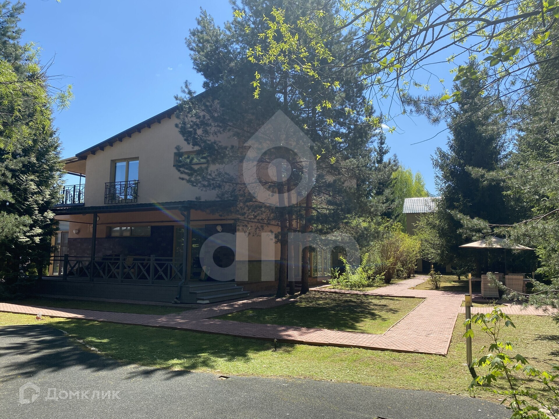 Двухэтажный коттедж в тихом уютном поселке на Новой Риге. На лесном участке находятся: основной дом (350 кв.м), гостевой дом (175 кв.м), две веранды, зона отдыха с BBQ, детская игровая зона. Участок правильной формы, выполнен ландшафтный дизайн, вымощены дорожки.