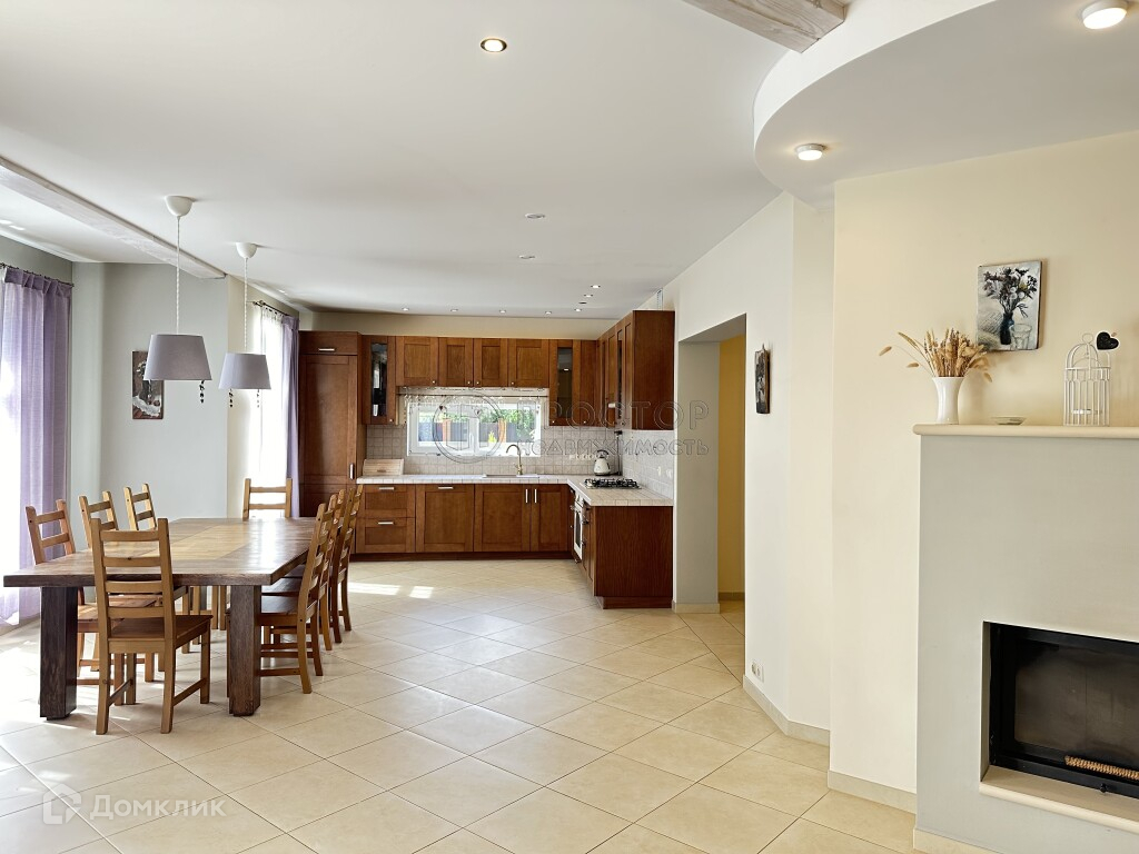 Просторная кухня-гостиная с камином (открытый и закрытый, с гильотинной системой) с выходом на террасу.
