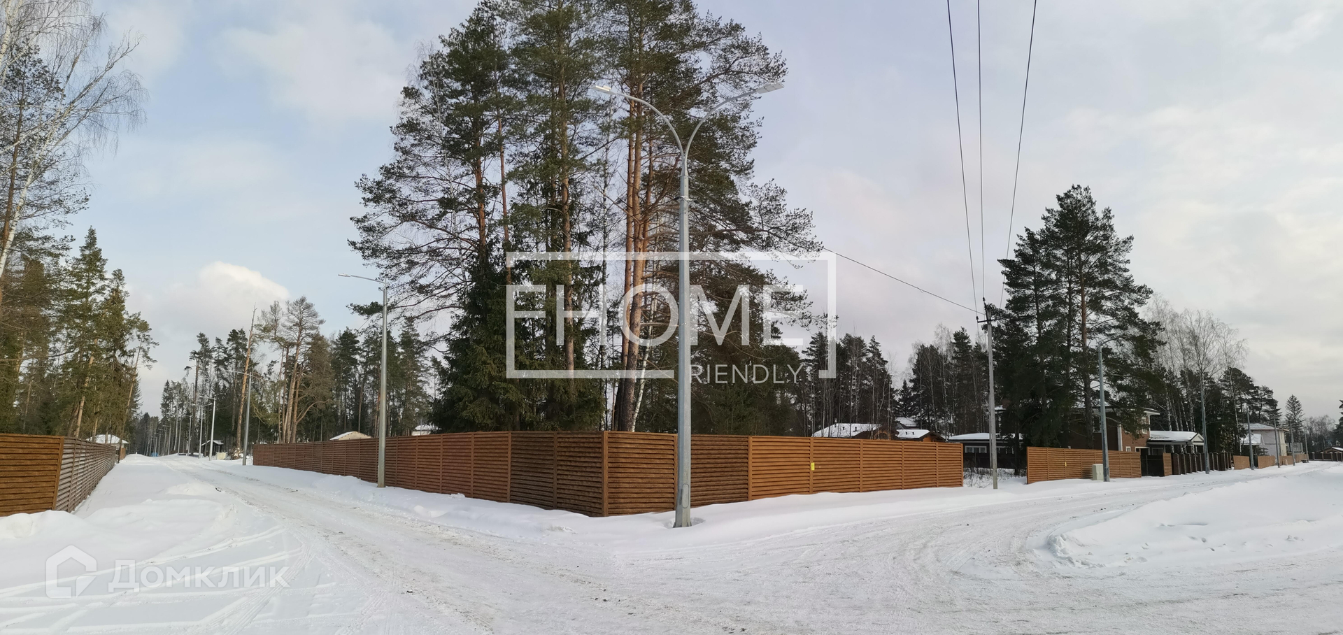 Участок: ровный, прямоугольный, в самой высокой части посёлка, более 20 взрослых деревьев, 300 метров до берега речки Липка (приток р. Москвы).