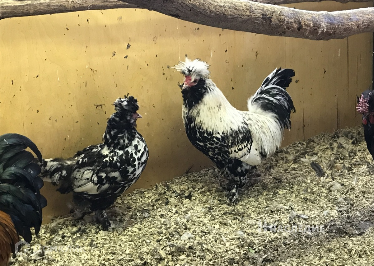 прудами с рыбами, водопадами, курами элитных пород, попугаями, фазанами.