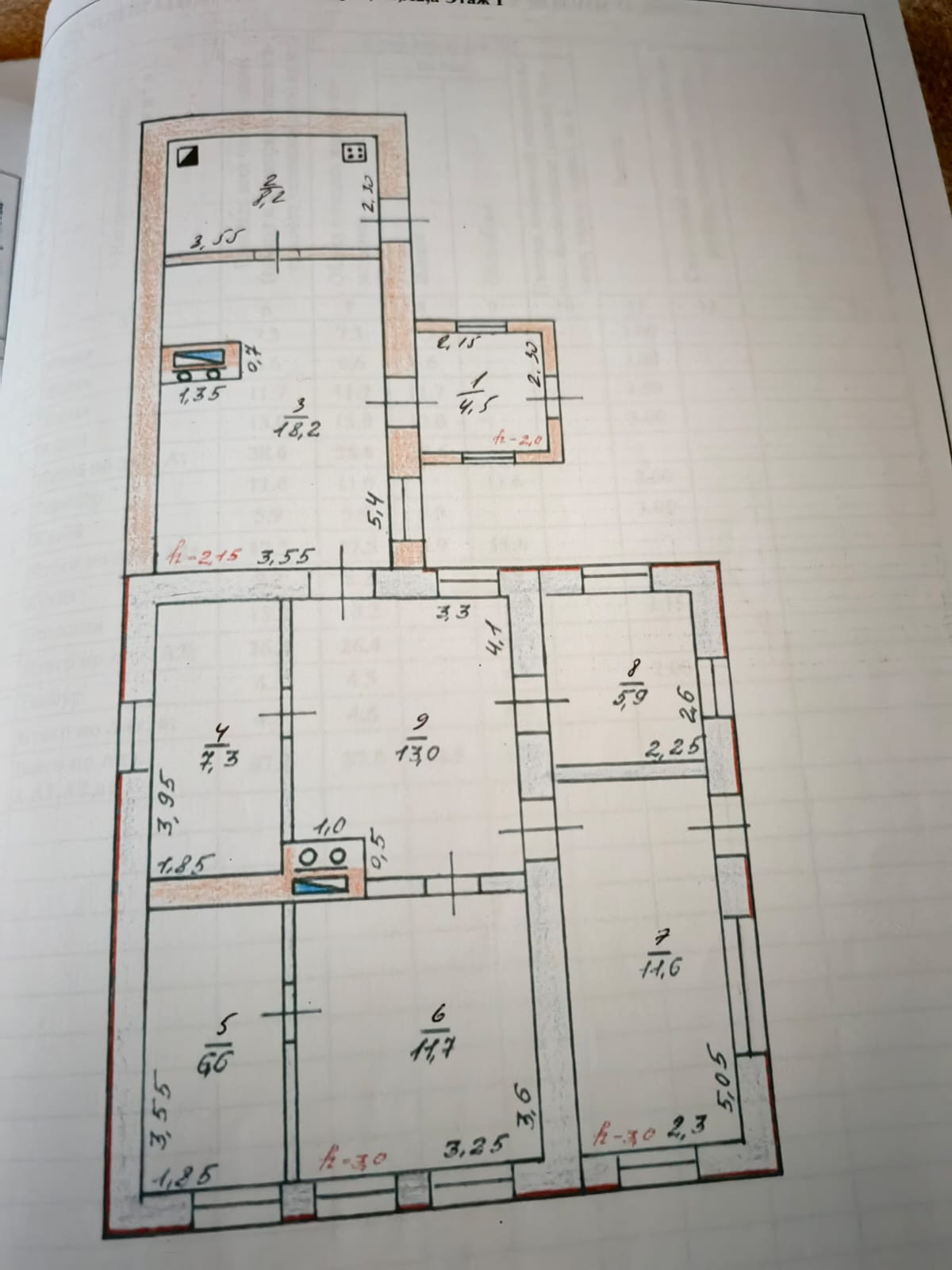 В доме 5 комнат (3 изолированные и 2 проходные)