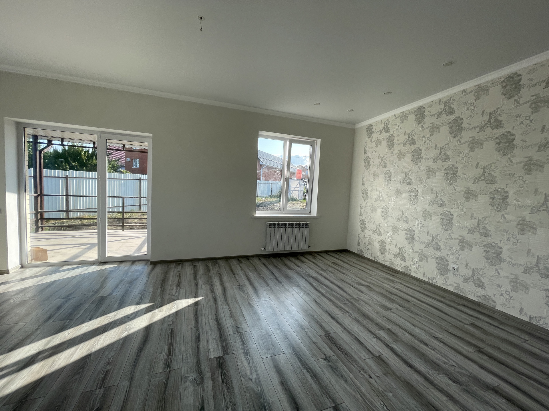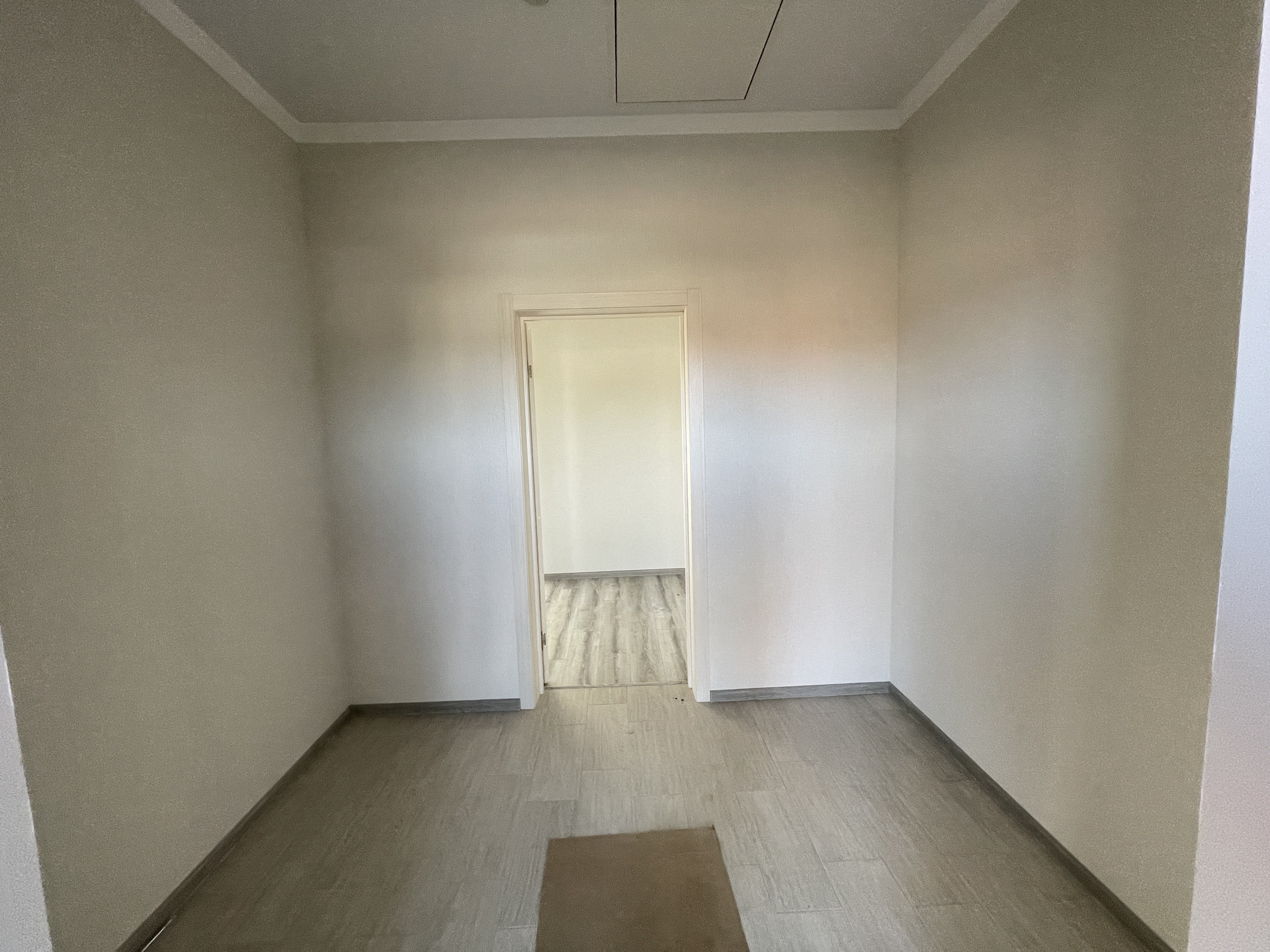 * •    Стены оклеены обоями в светлых нейтральных тонах.