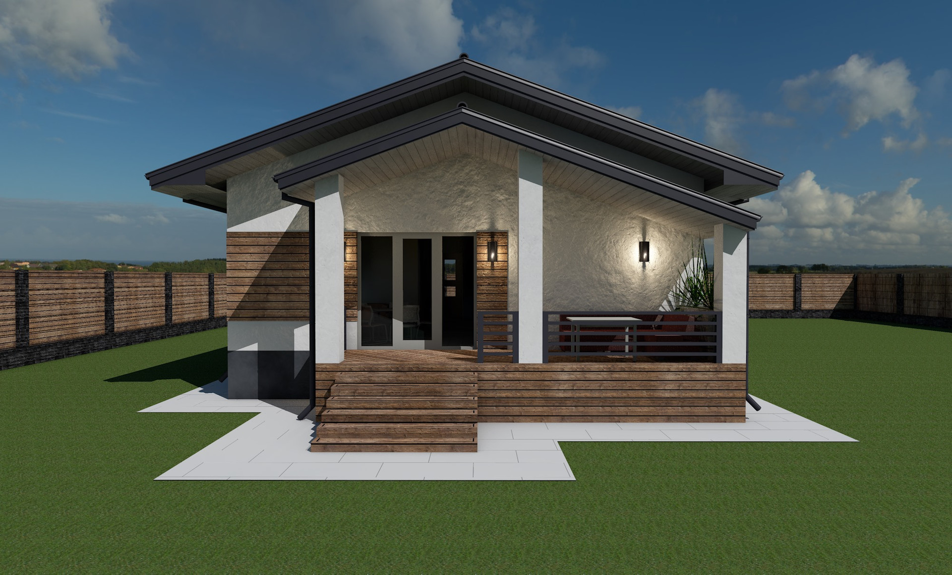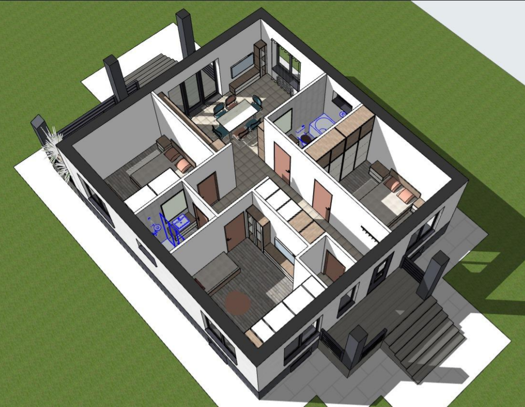 Площадь дома по первому этажу 85м + терраса 15м.