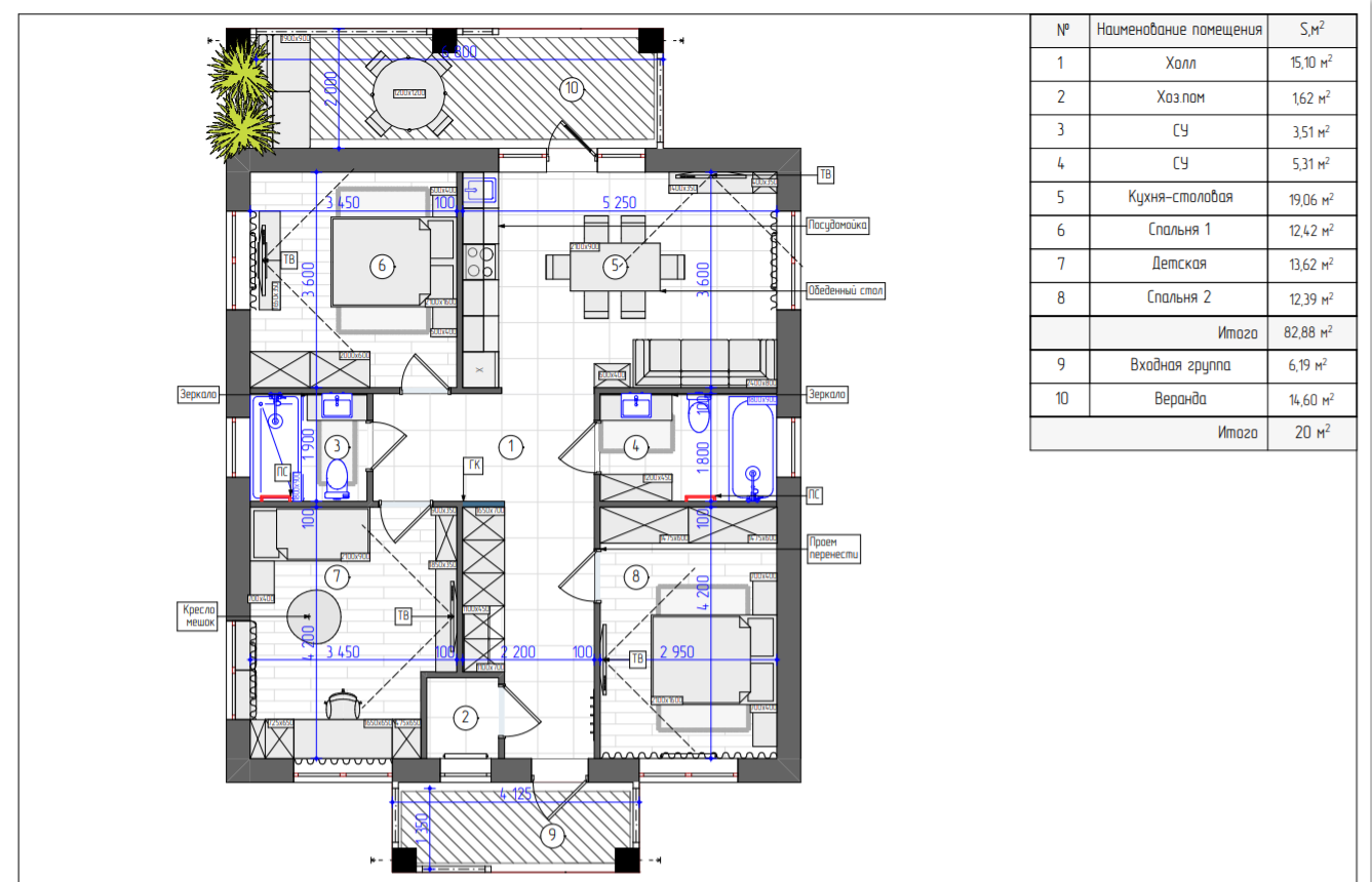 Общая площадь 140 м2