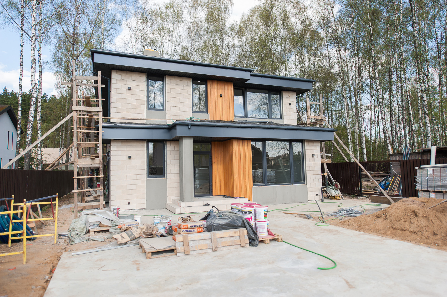 Продаю новый дом с полной отделкой. Современный стиль в отделке, дизайн-проект. На первом этаже расположены: прихожая, котельная с зоной прачечной, кухня-гостиная со своей кладовой, санузел с душем и гостевая спальня. Из кухни выход на крытую террасу, с видом на участок и лес. На втором этаже располагаются три спальни: главная спальня со своим санузлом и гардеробной комнатой и две других спальни с общим на этаж санузлом. Дом расположен на самой красивой и спокойной улице поселка. Поселок полностью жилой, все коммуникации центральные. В поселке есть детская и отличная спортивная площадка. В 10 минутах ходьбы магазин, прогулочная набережная и остановки общественного транспорта.
