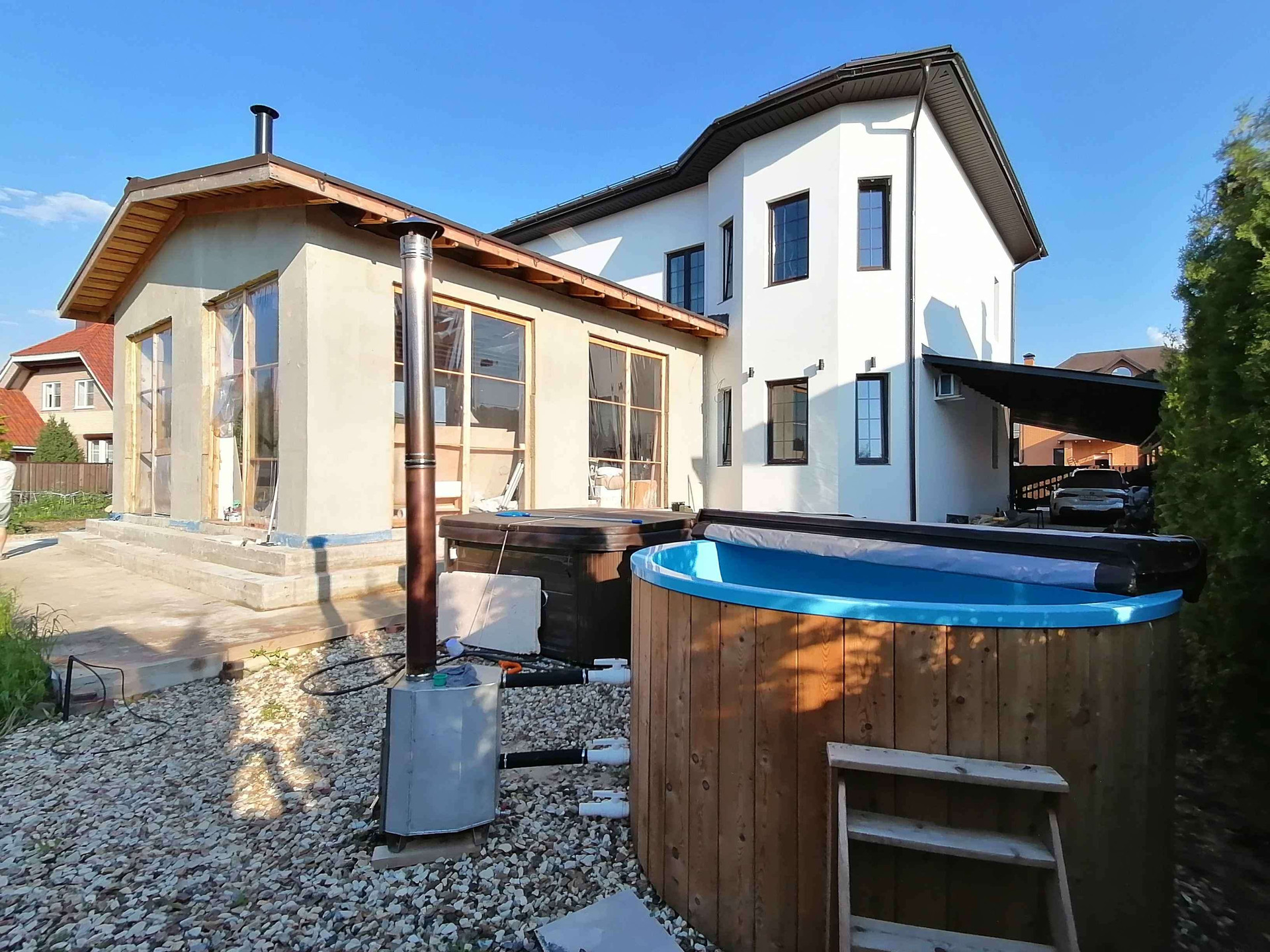 + КЕДРОВАЯ ПАНОРАМНАЯ БАНЯ НА УЛИЦЕ С БОЛЬШОЙ КУПЕЛЬЮ С ПОДОГРЕВОМ