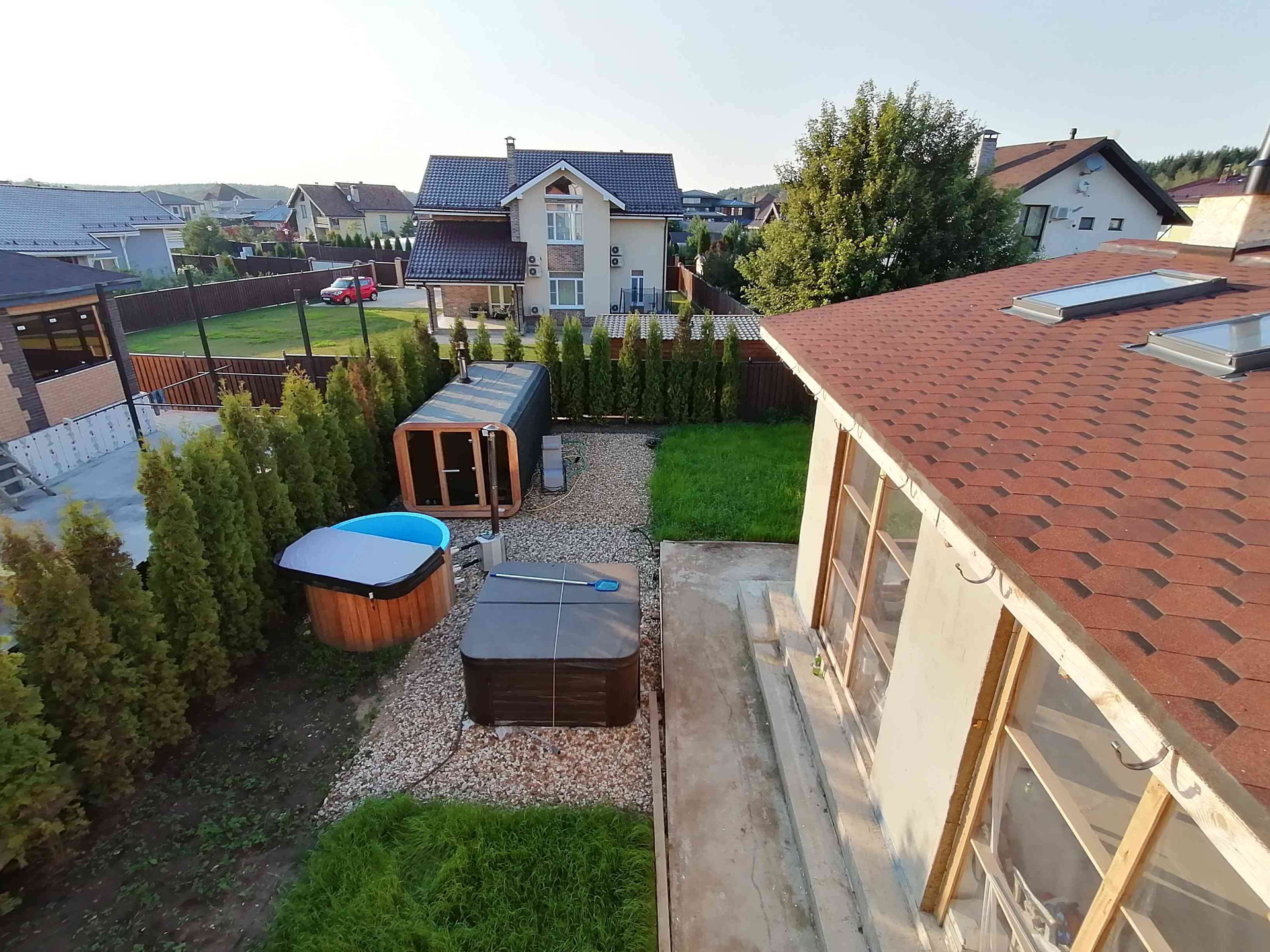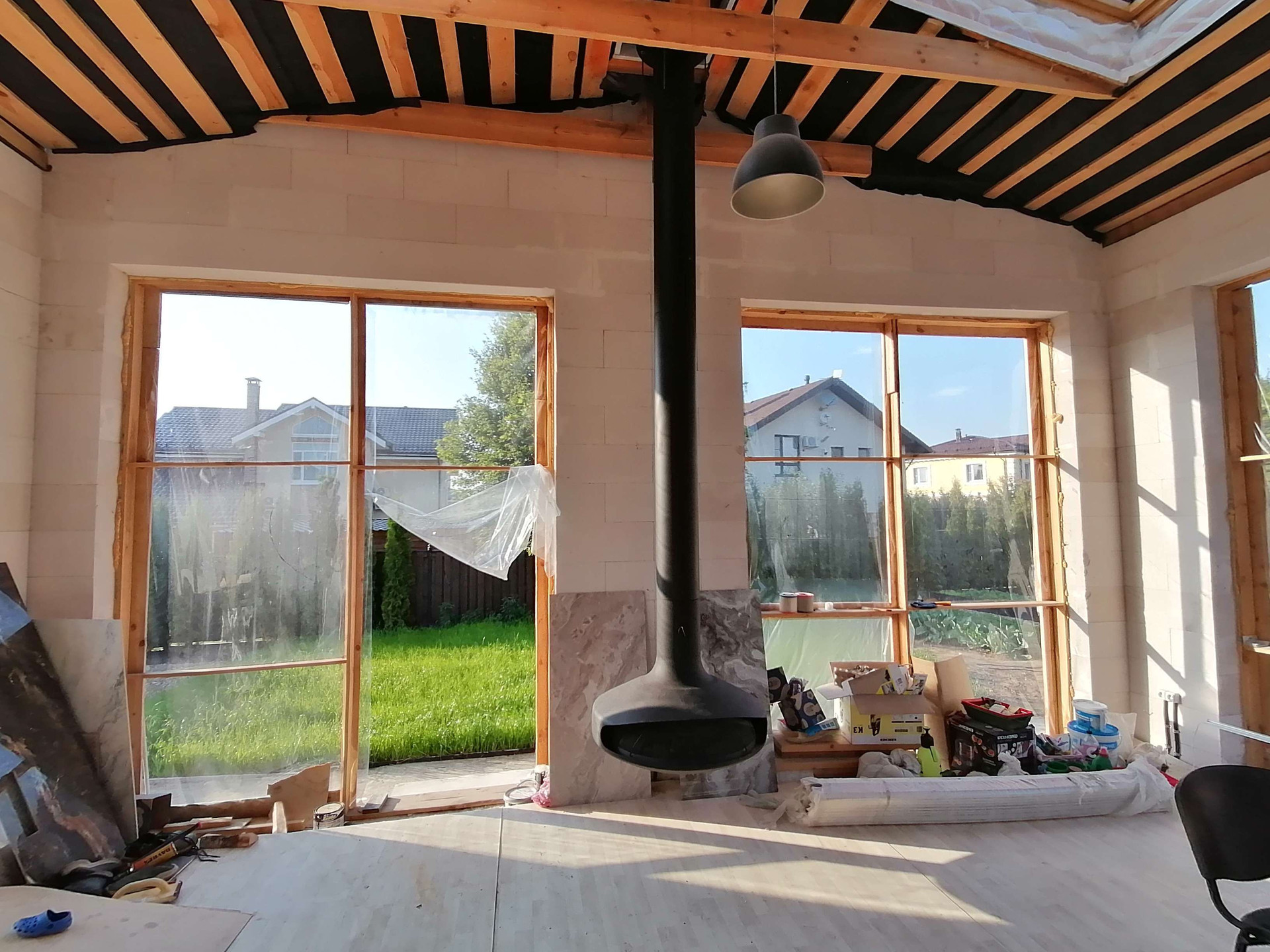 + Веранда высота потолков 7 метров, 8 панорамных окон в крыше и 6 раздвижных проемов по периметру, очень светлое помещение