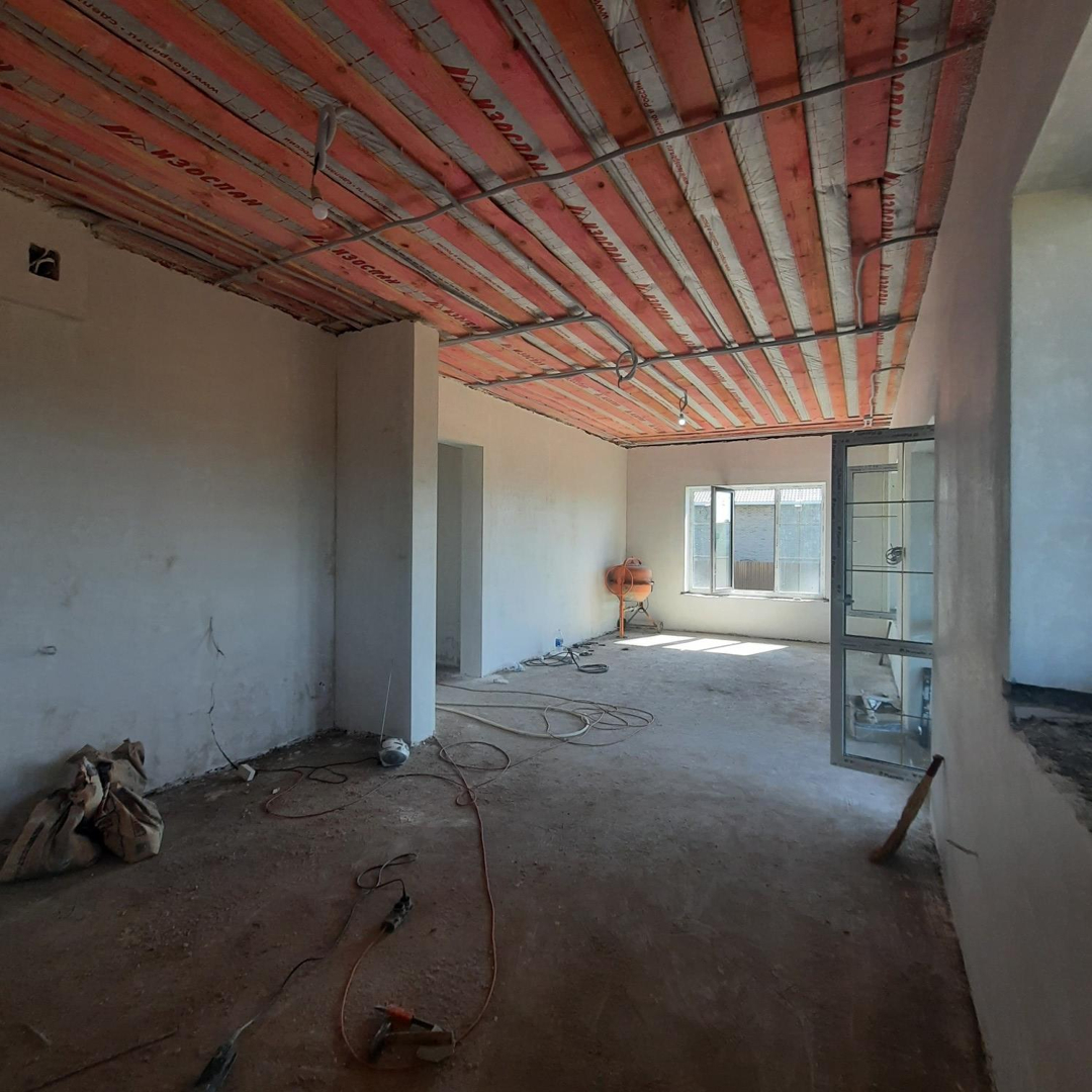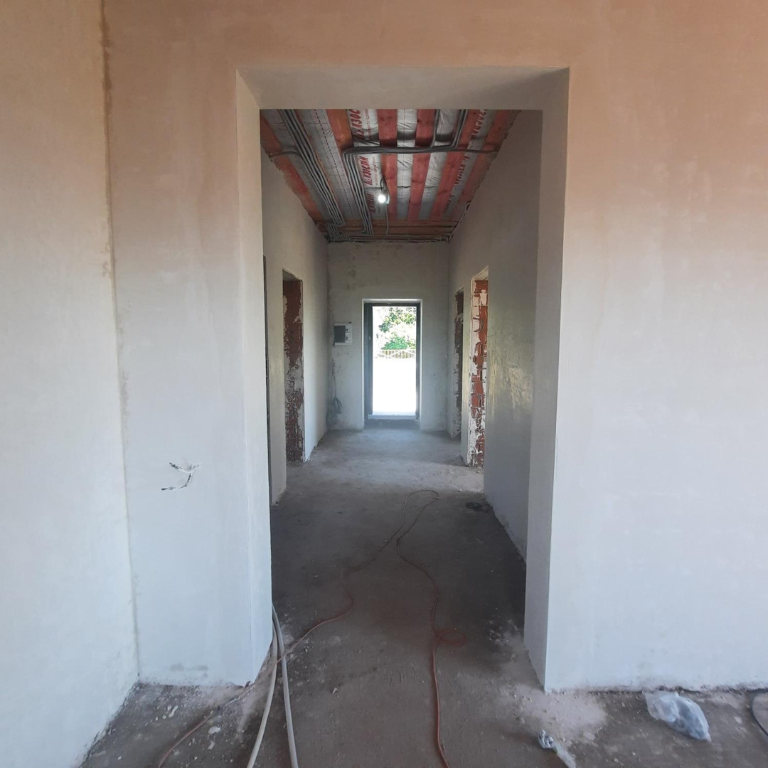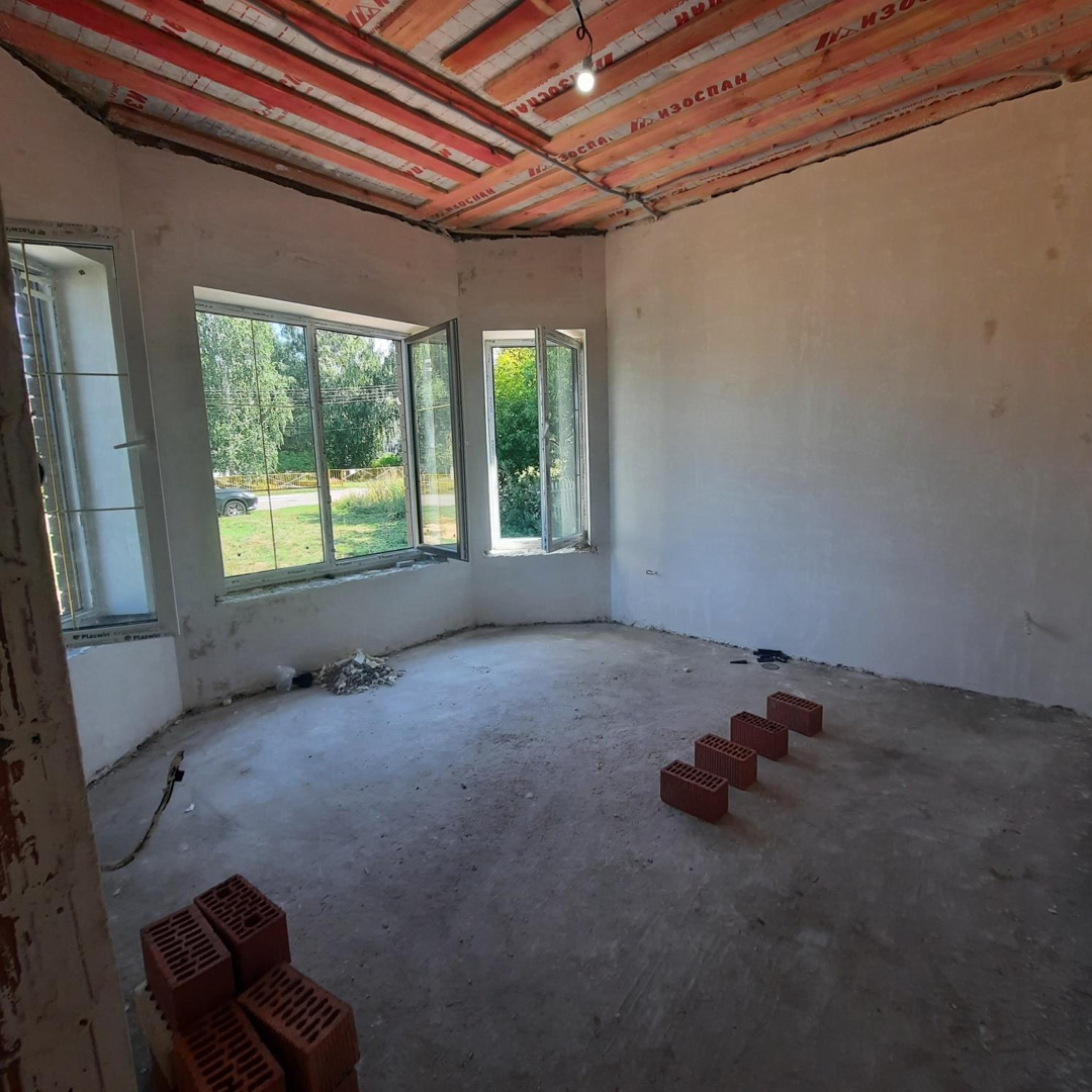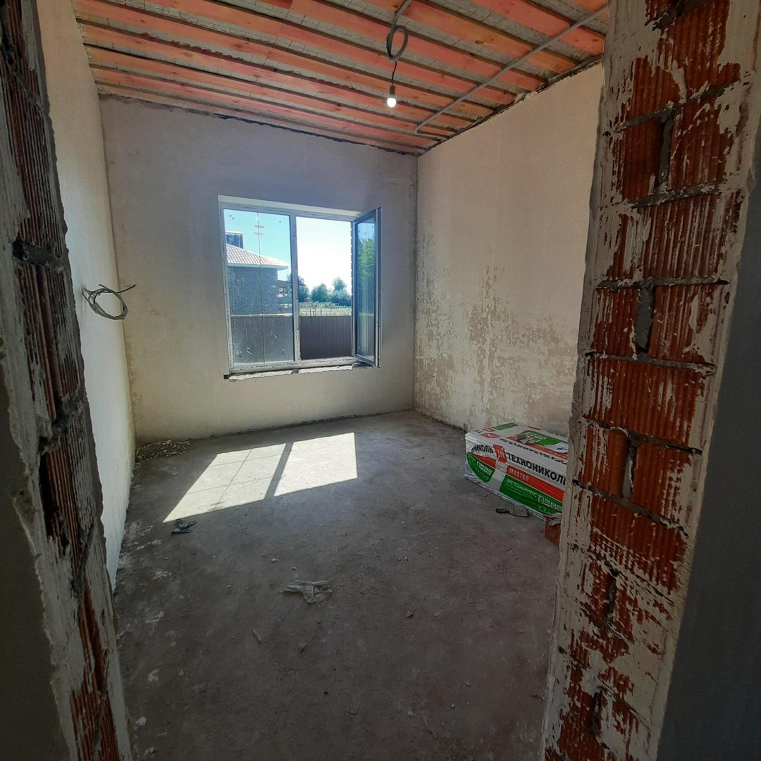 В доме качественная предчистовая отделка,  тёплые полы, установлен газовый котёл и радиаторы отопления, кровля мягкая черепица, отмостка.