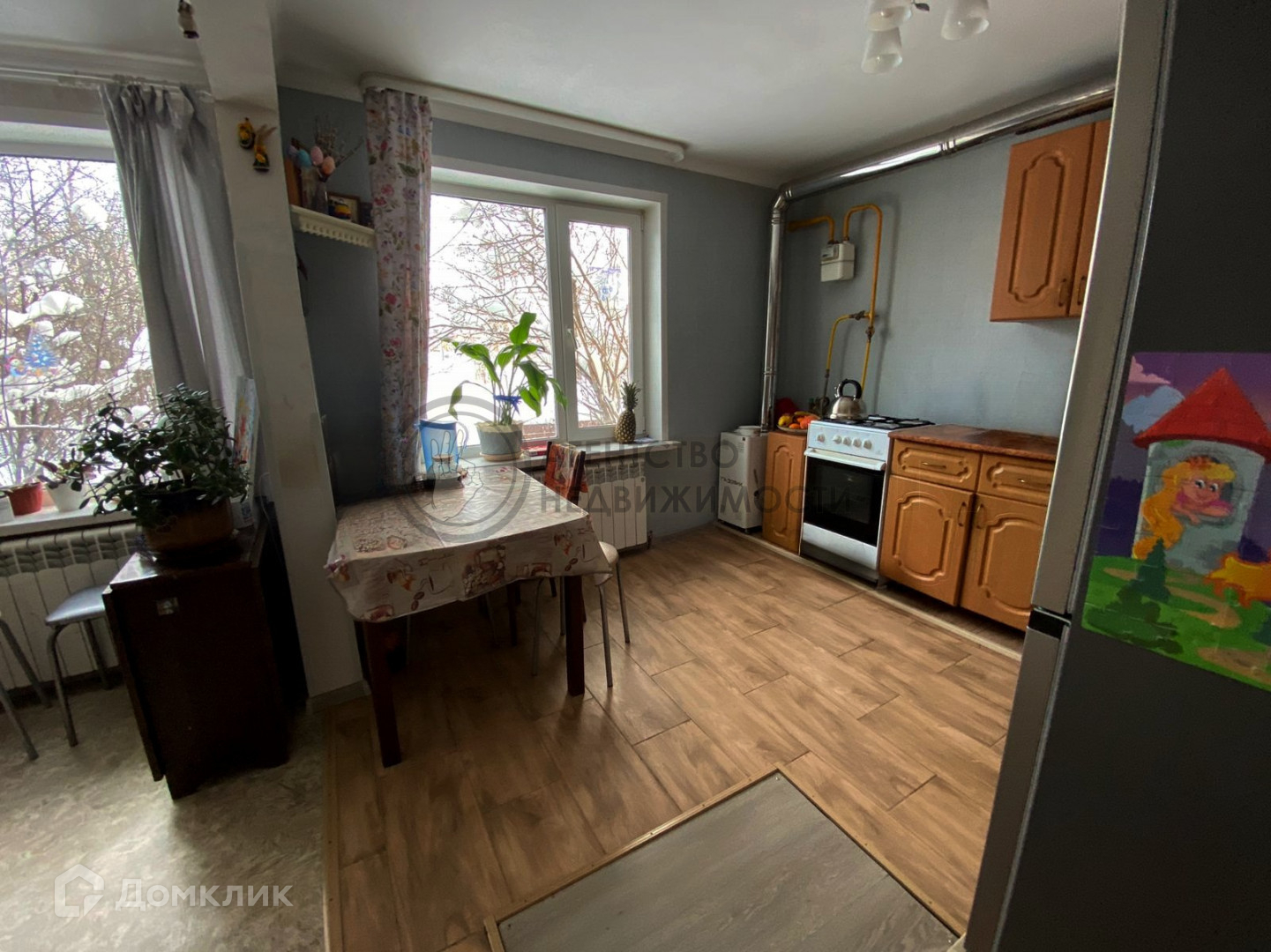 Высота потолков 3 метра, поклеены обои, уложен пол, установлен газовый котел, хорошая