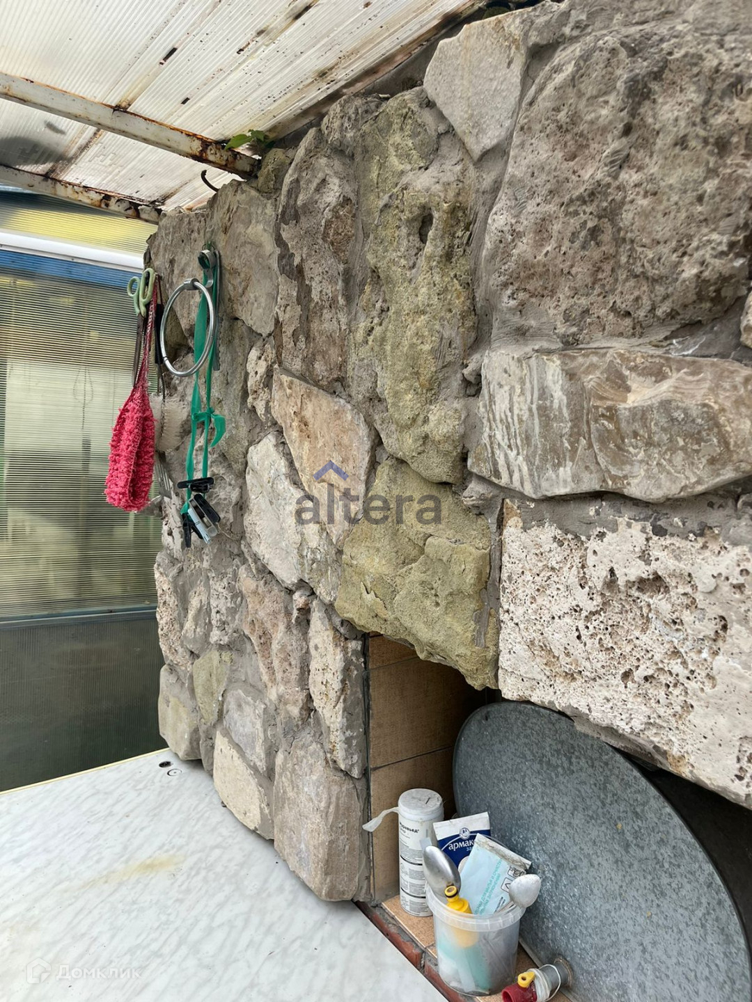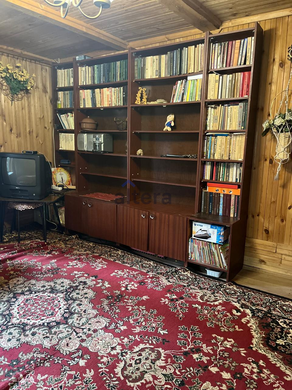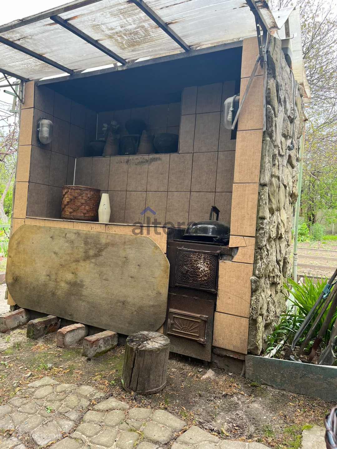 На участке двухэтажный домик, в основе которого лежит бревенчатый сруб, крытая веранда, баня с бассейном, отдельная вместительная хоз. постройка, две теплицы.