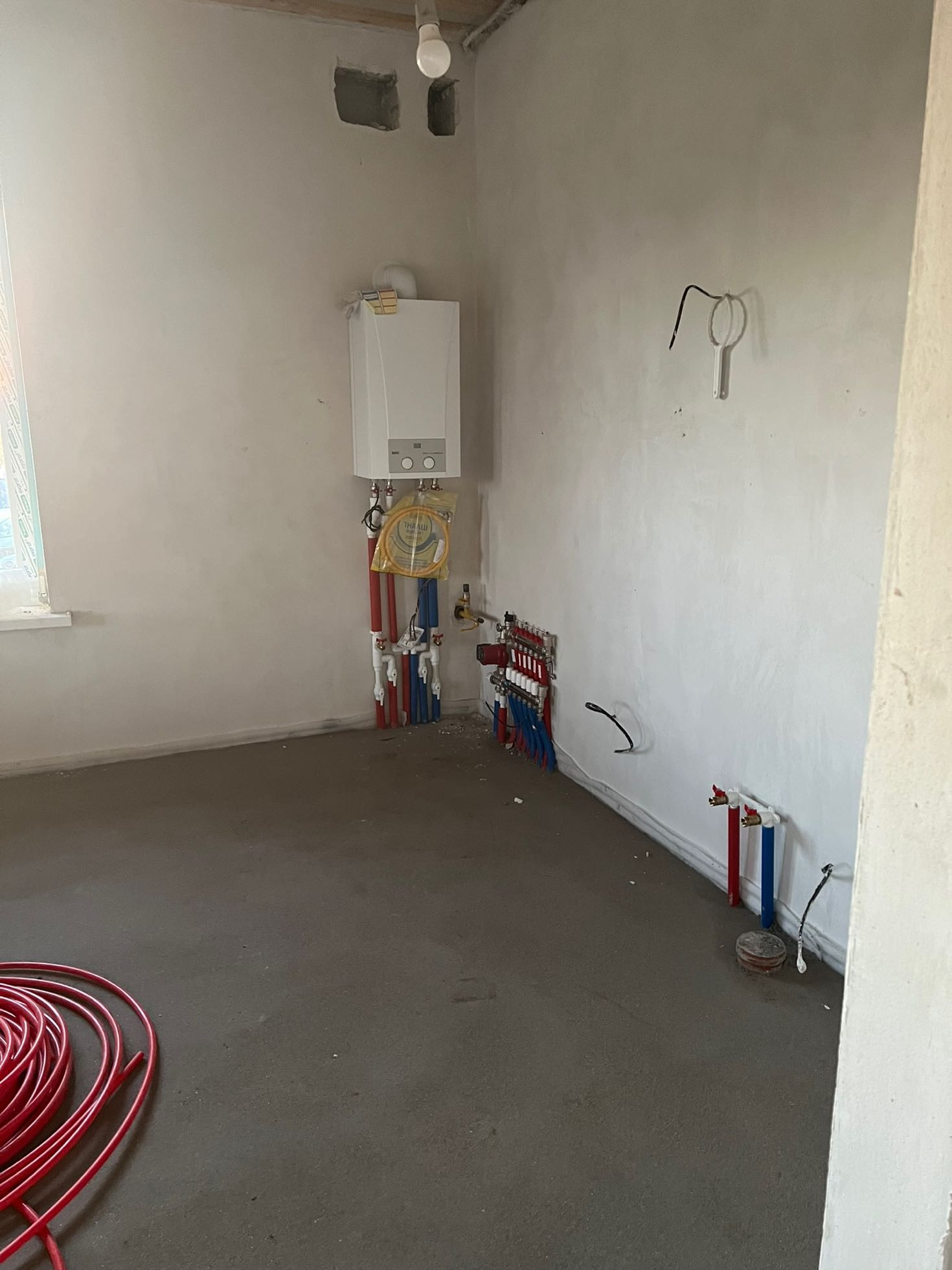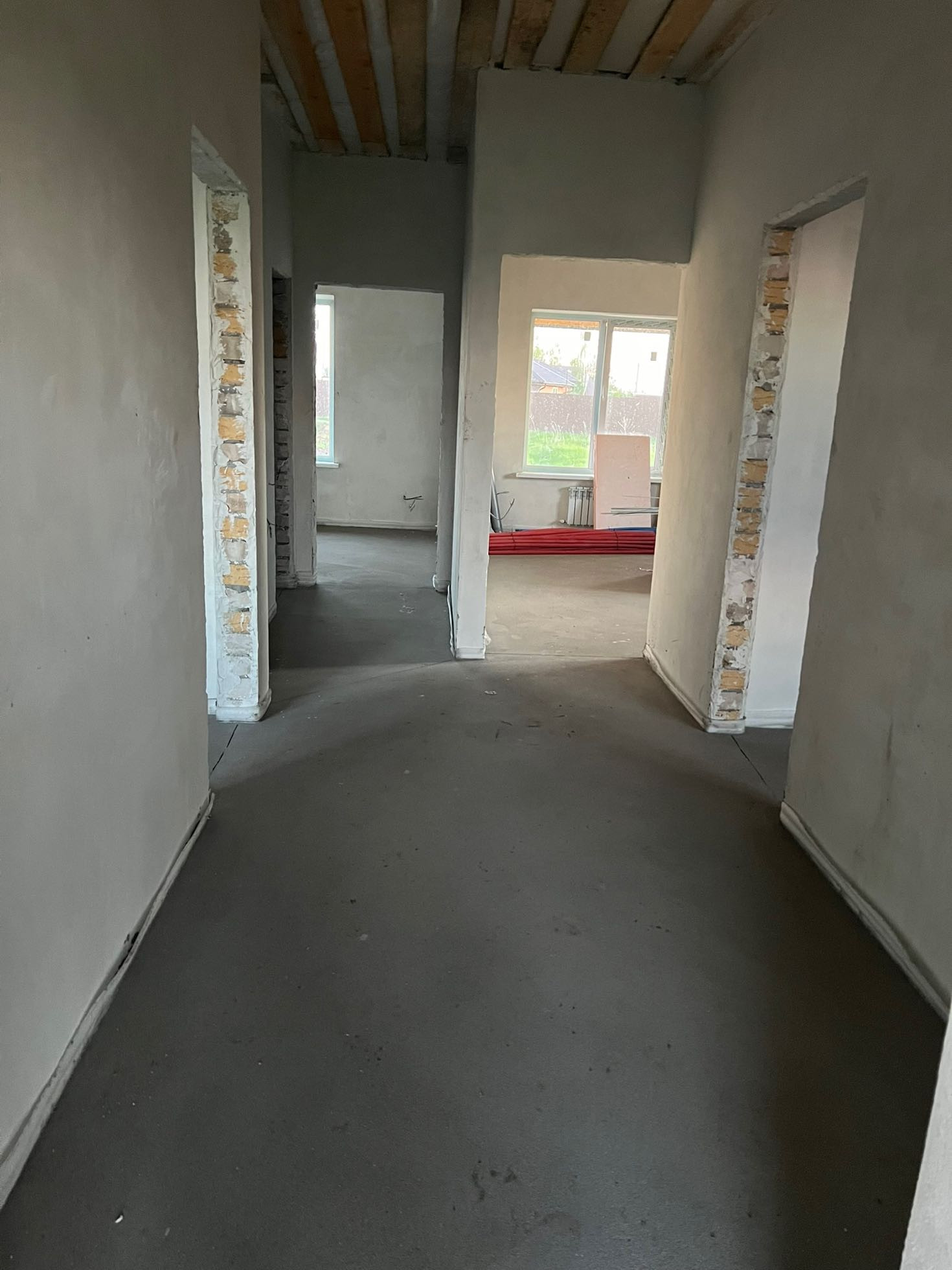В дом подведено электричество, газ, пробурена скважина на воду, есть канализация, ровный пол . По полу сделан теплый пол , на стенах радиаторы. Дом в предчистовой отделке. Дом построен из красивого кирпича.