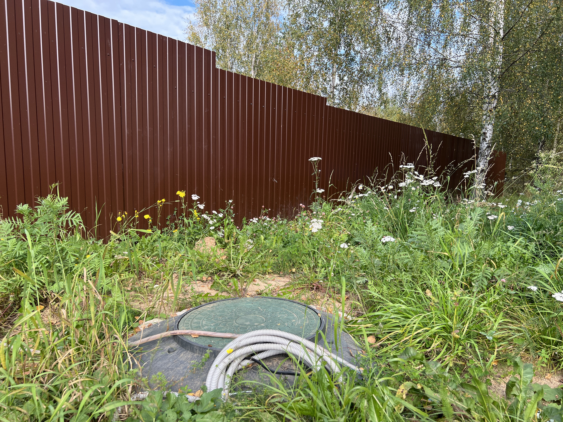 10 соток, есть возможность увеличить до 20 соток с доплатой. Огорожен забором; Отмостка вокруг дома забетонирована.
