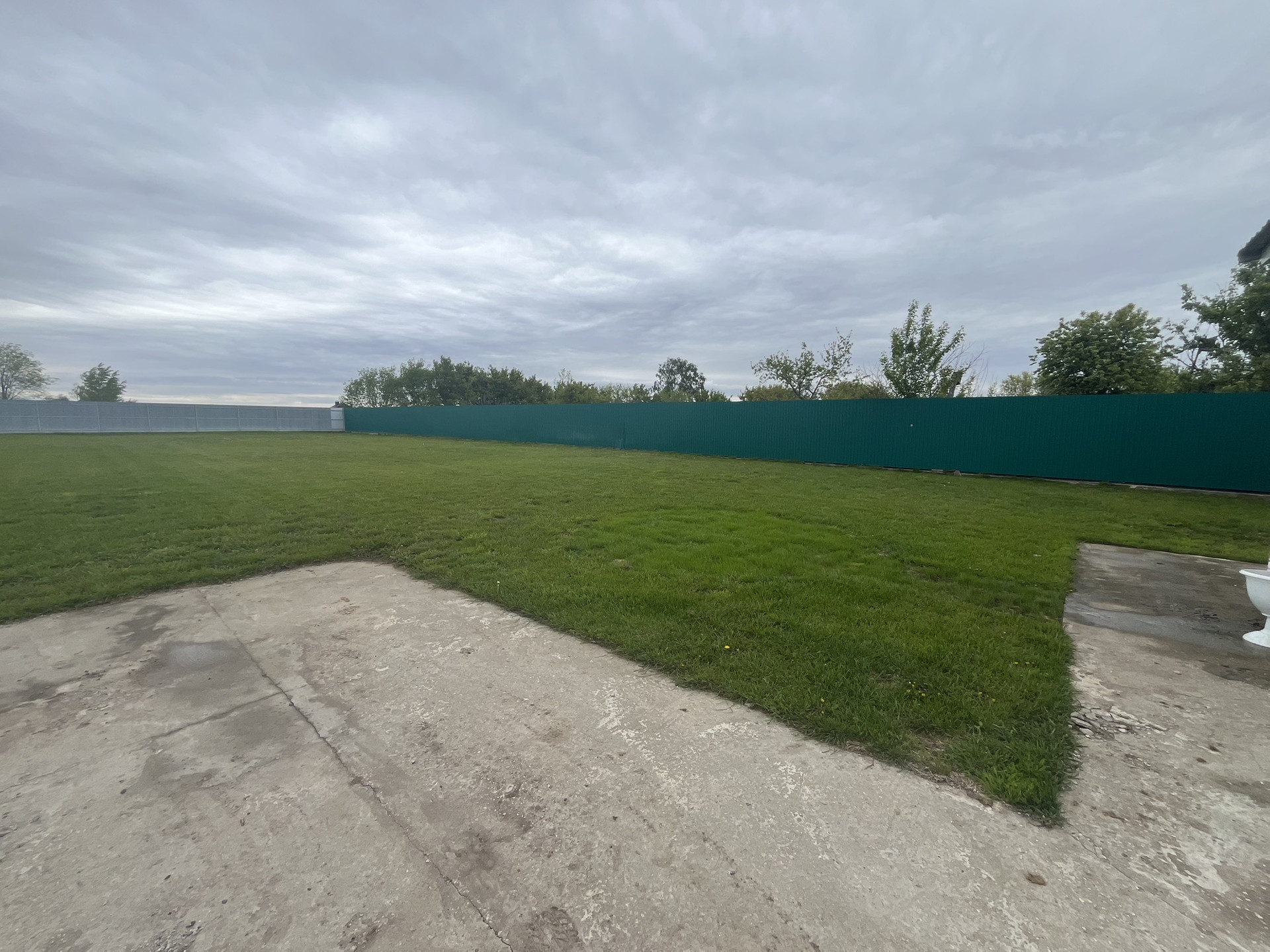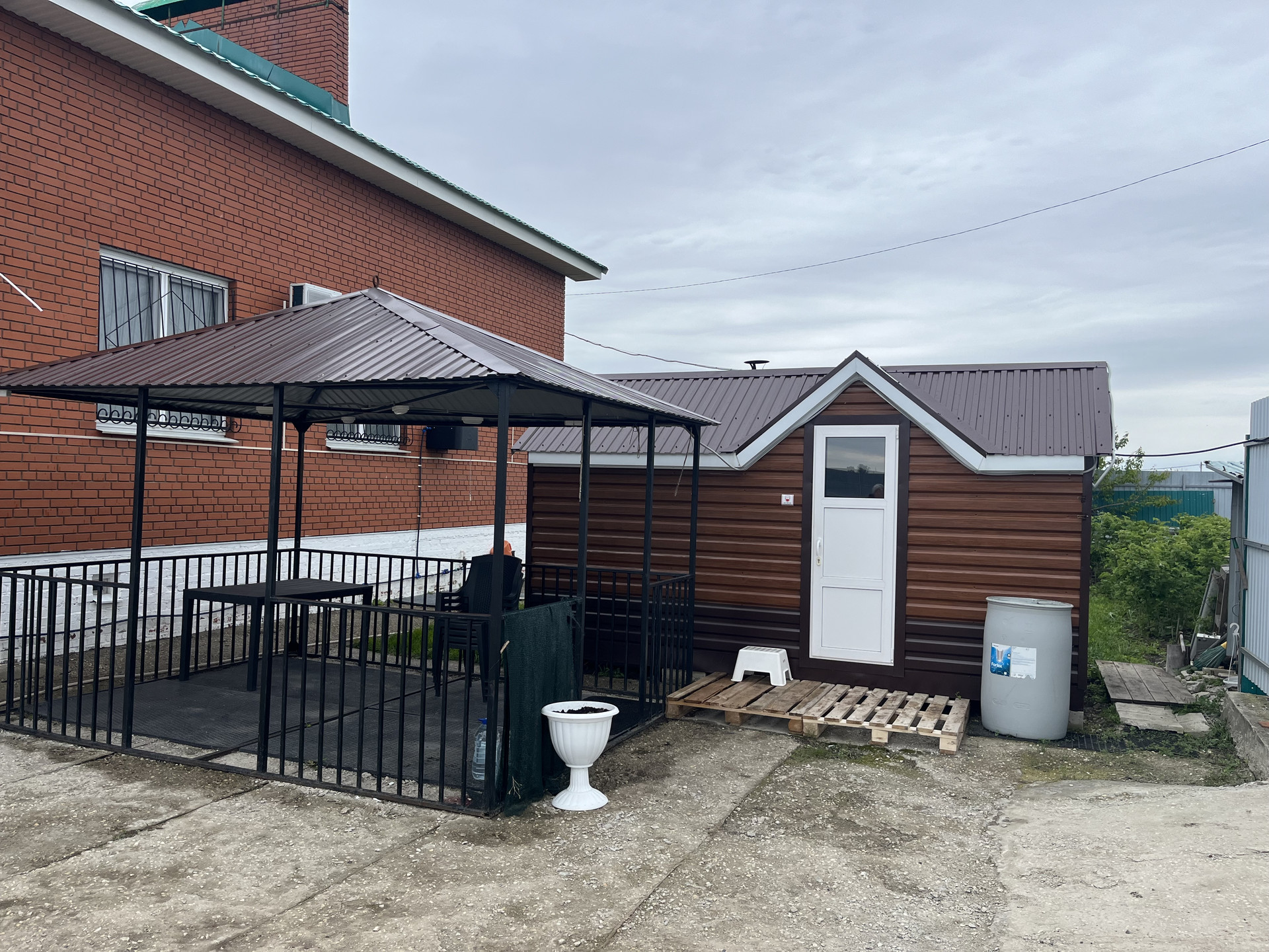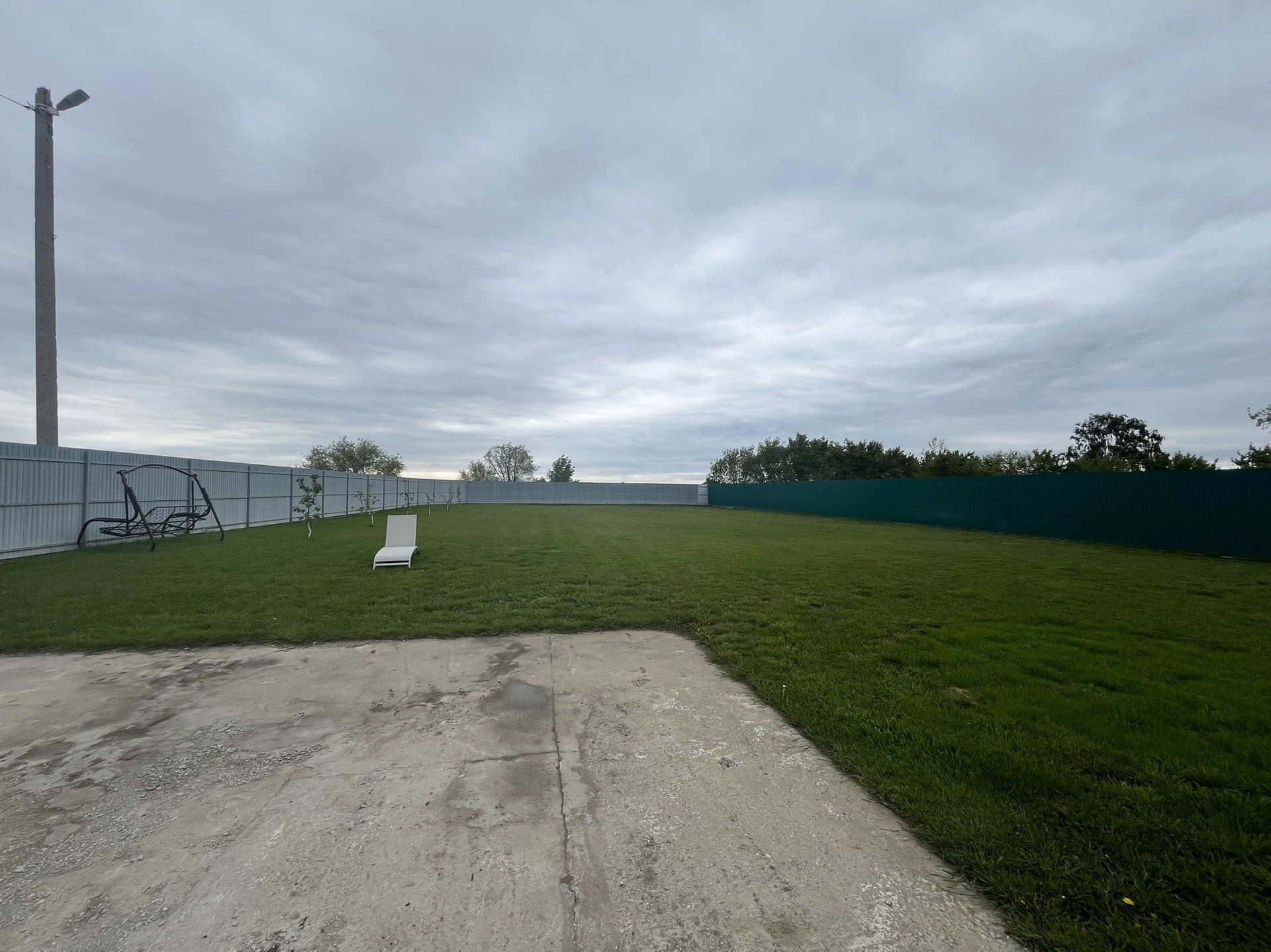 Участок полностью усажен газоном. На территории рядом с домом стоит баня и беседка.