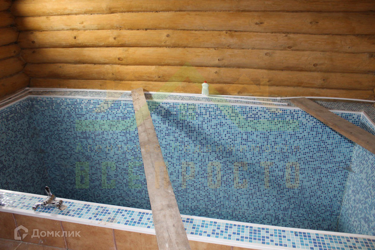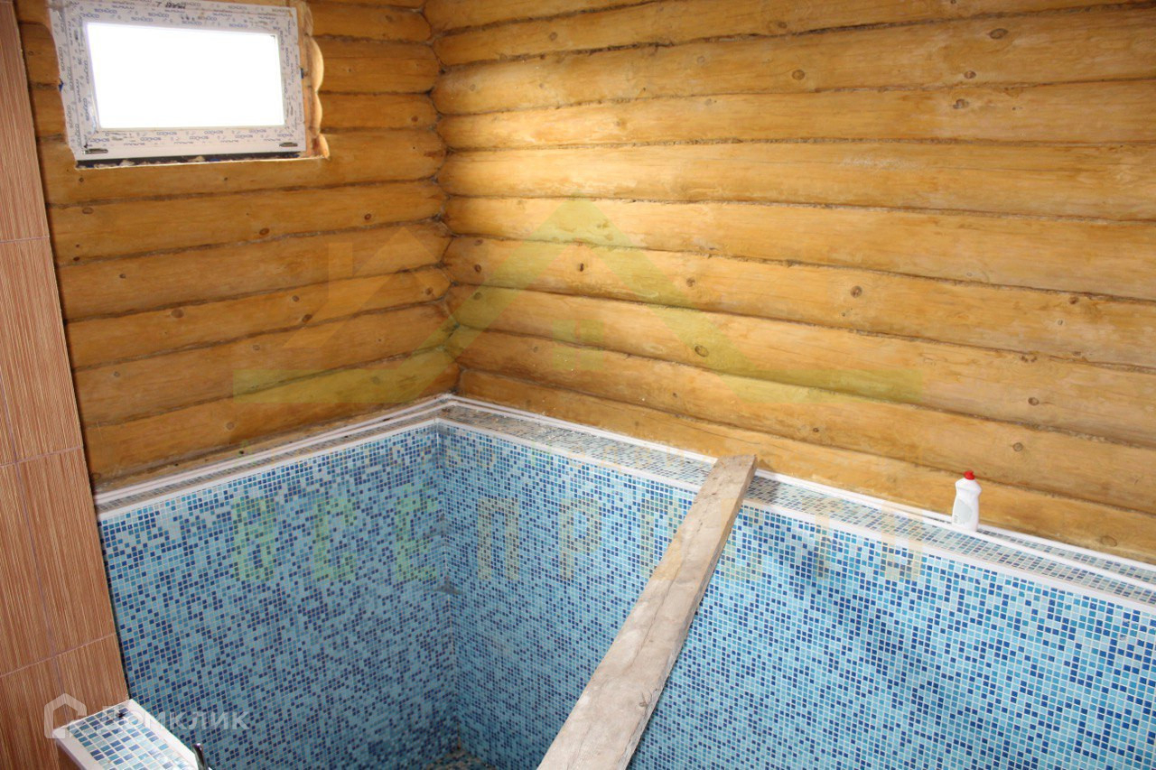 В бане из бруса имеется бассейн, камин, зона отдыха. Двухэтажный дом из пеноблоков обложен  красным кирпичом