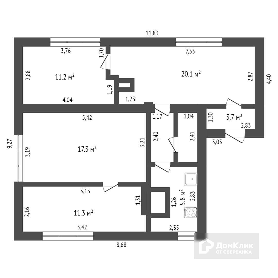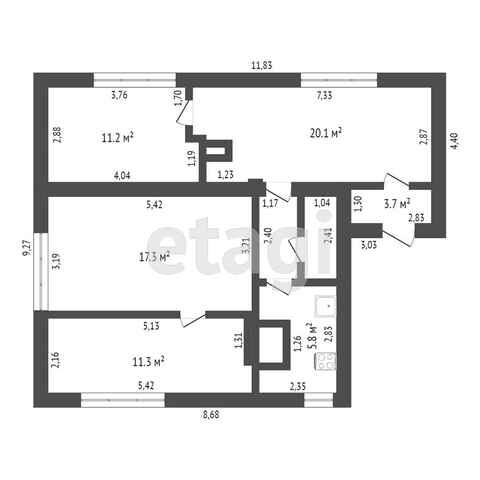 Общая площадь 74.7 м2