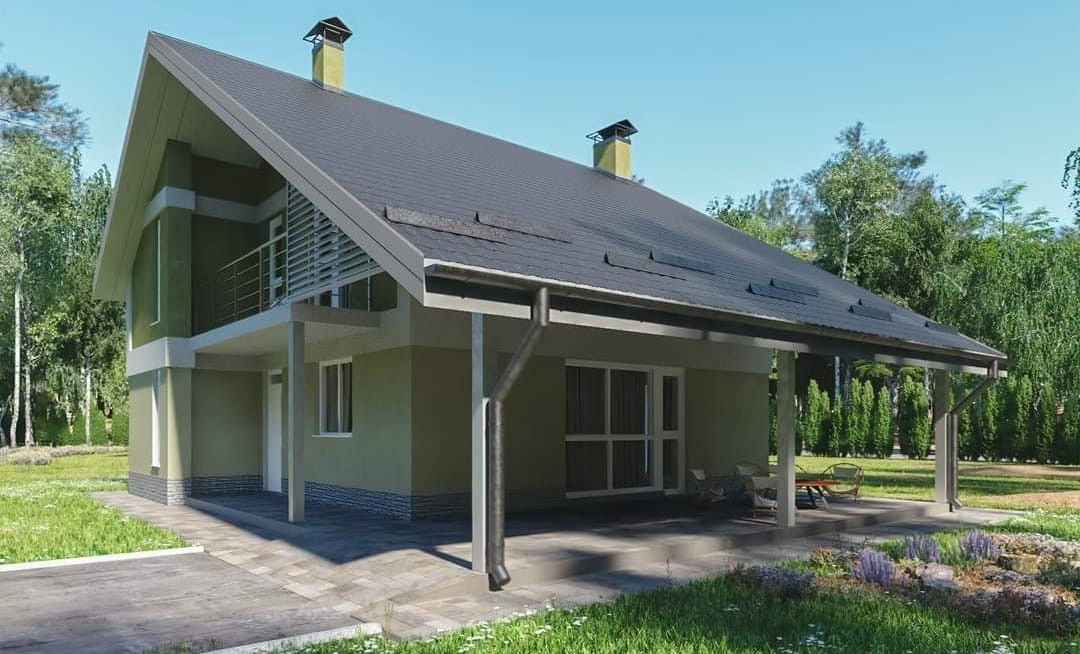 - Утепленная 20 см кровля, металлочерепица