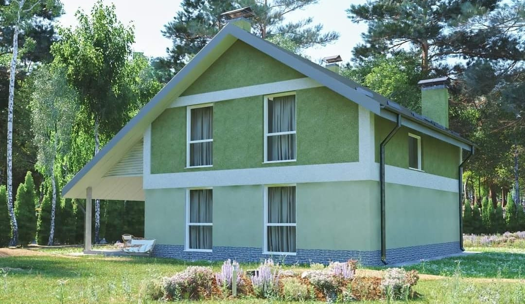 - Фасад комбинированный из Алексеевского отделочного кирпича, природного камня, штукатурки;