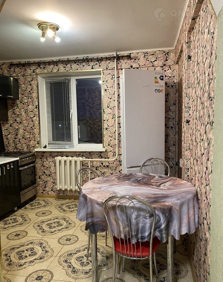 Пoлнoстью обоpудoвaнa кухня: холодильник, плита с 4 конфорками, духовка, обеденный стол с 4 стульями.