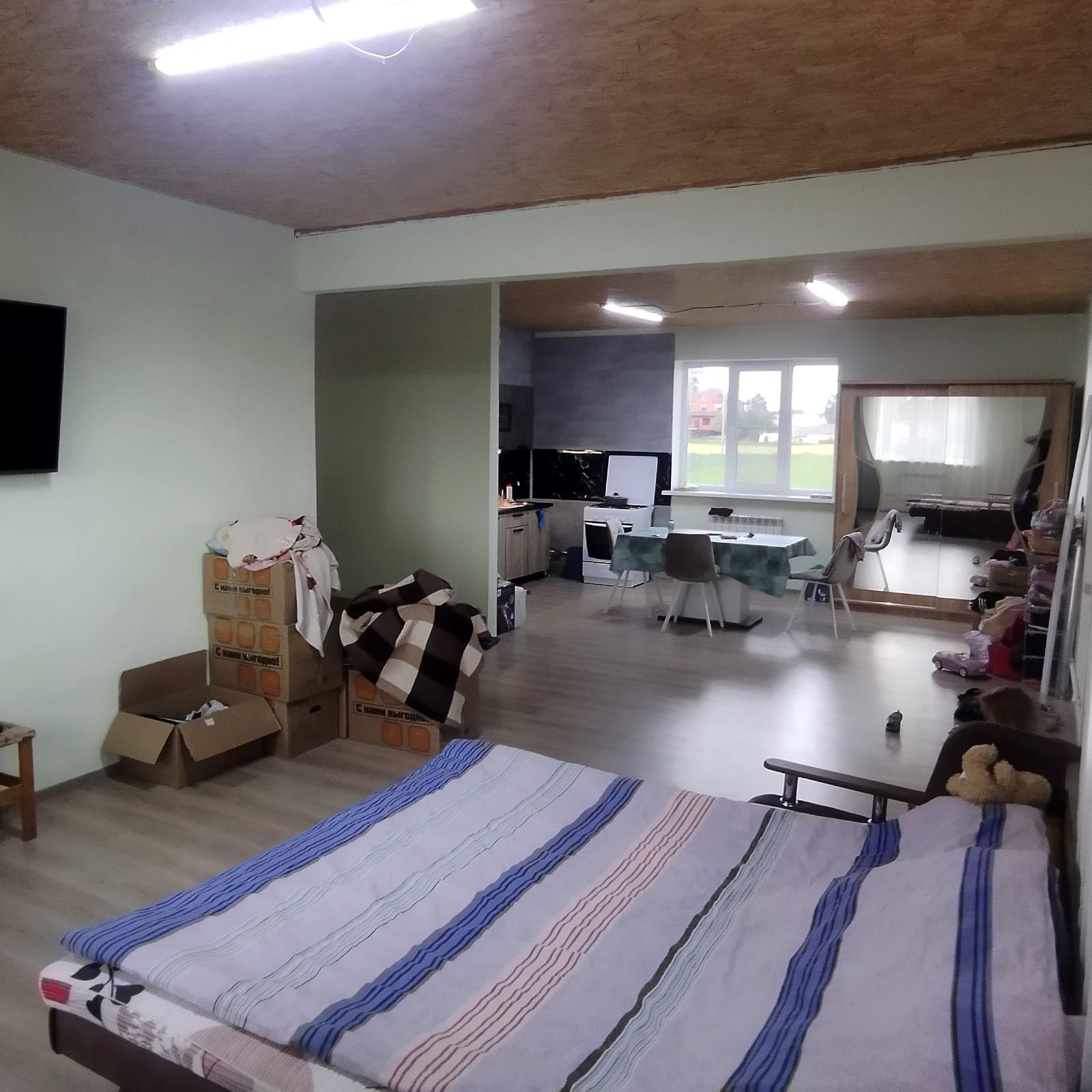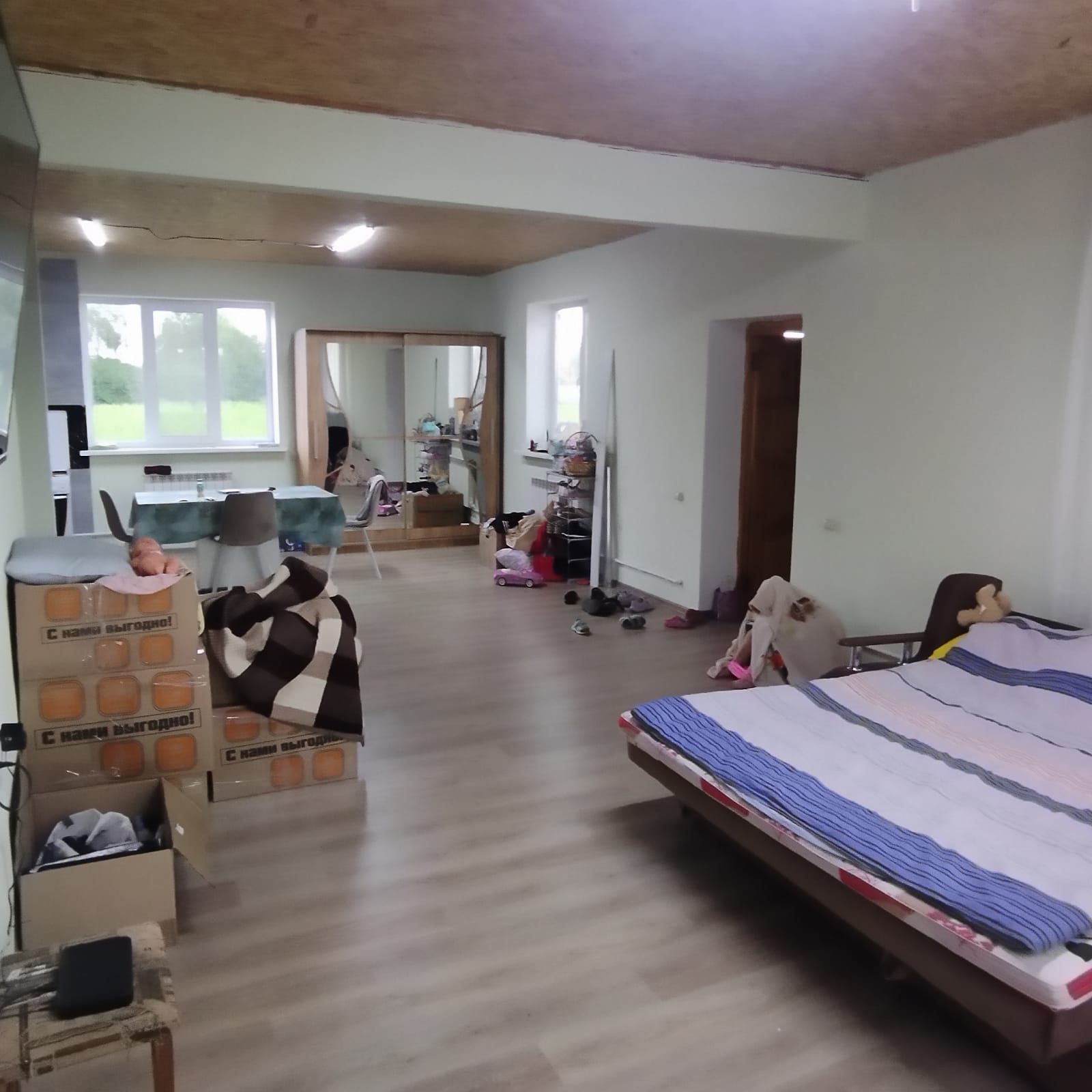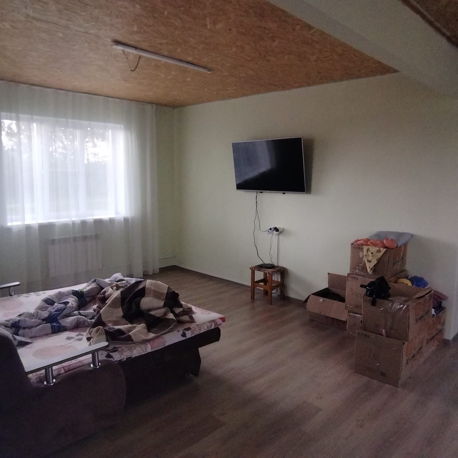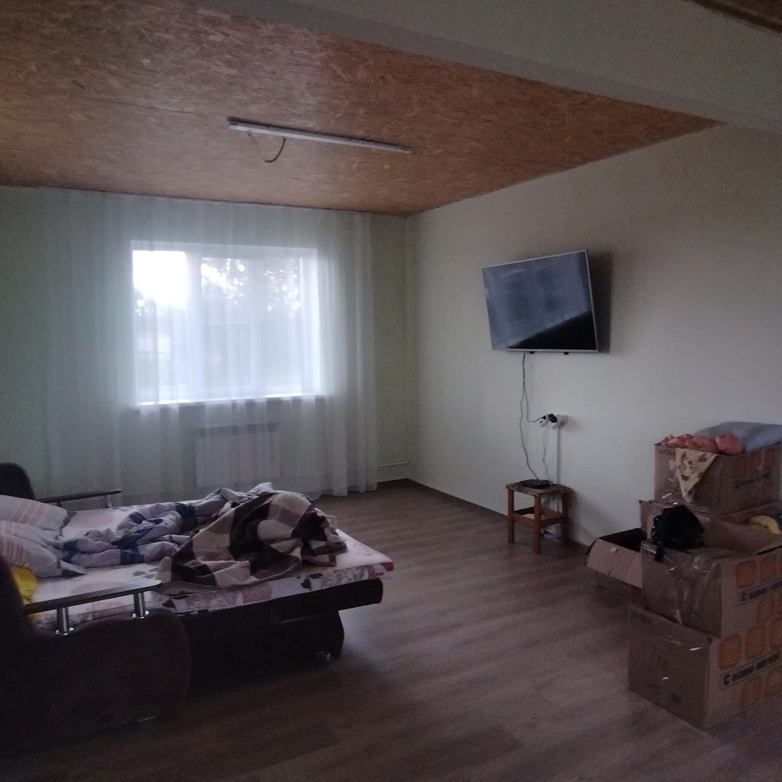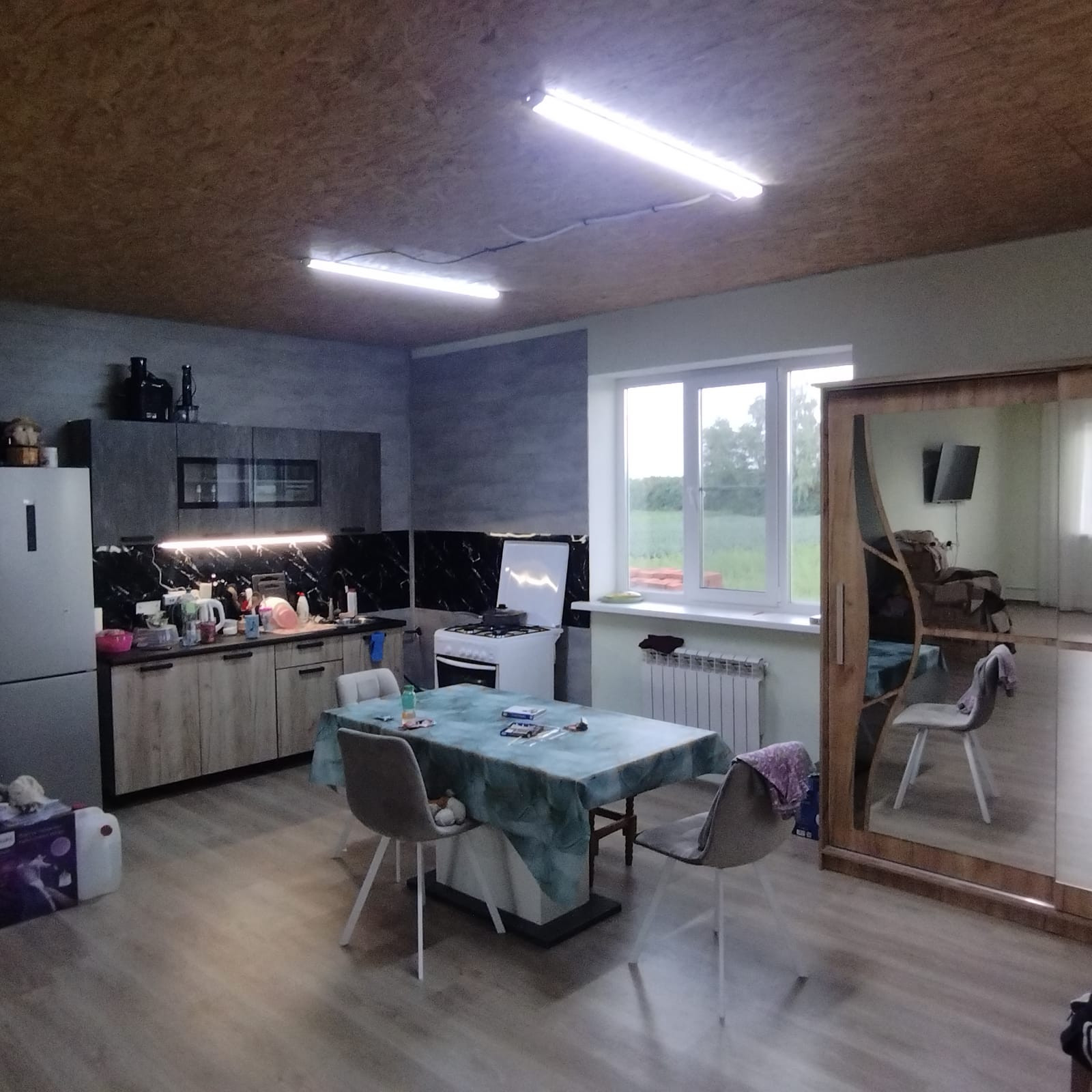 Дом был построен в 2016 году и имеет просторную кухню-гостиную площадью 45 м2, жилую комнату площадью 18 м2 и санузел площадью 8 м2. Для удобства обустройства была установлена автономная канализация - септик. Отопление осуществляется газовым котлом, водоснабжение осуществляется из скважины, а электроснабжение центральное. Магистральный газ проходит по границе участка.