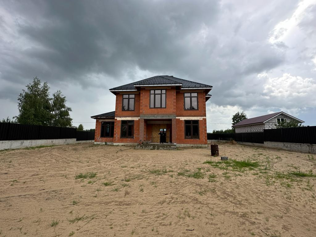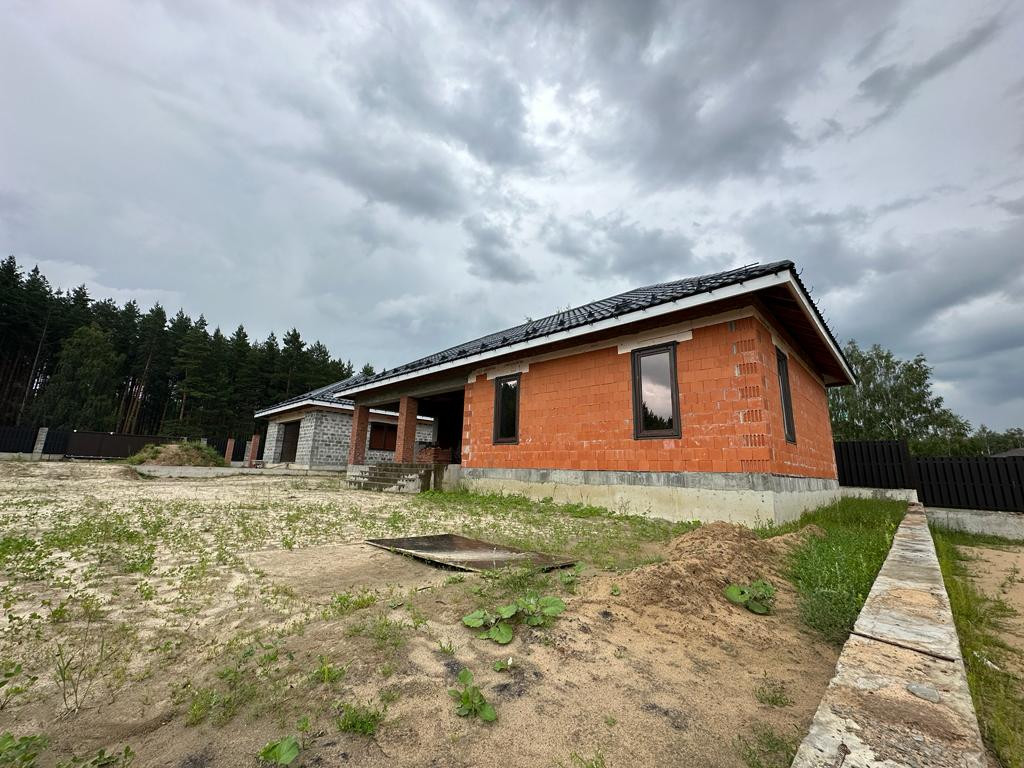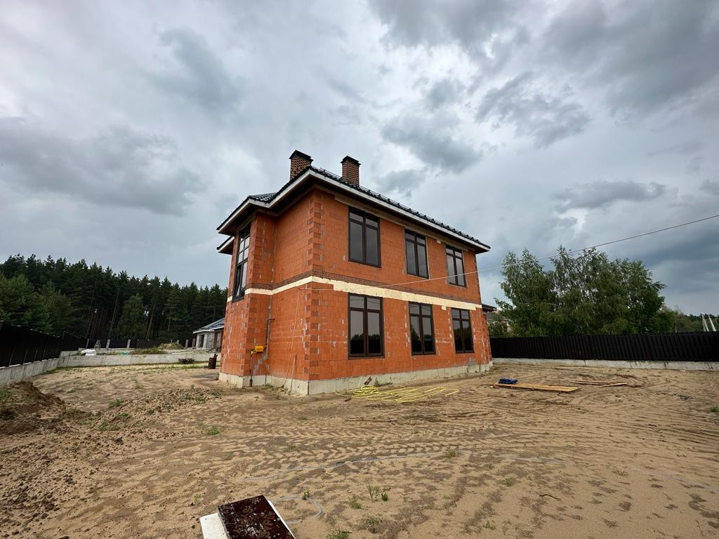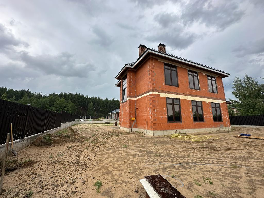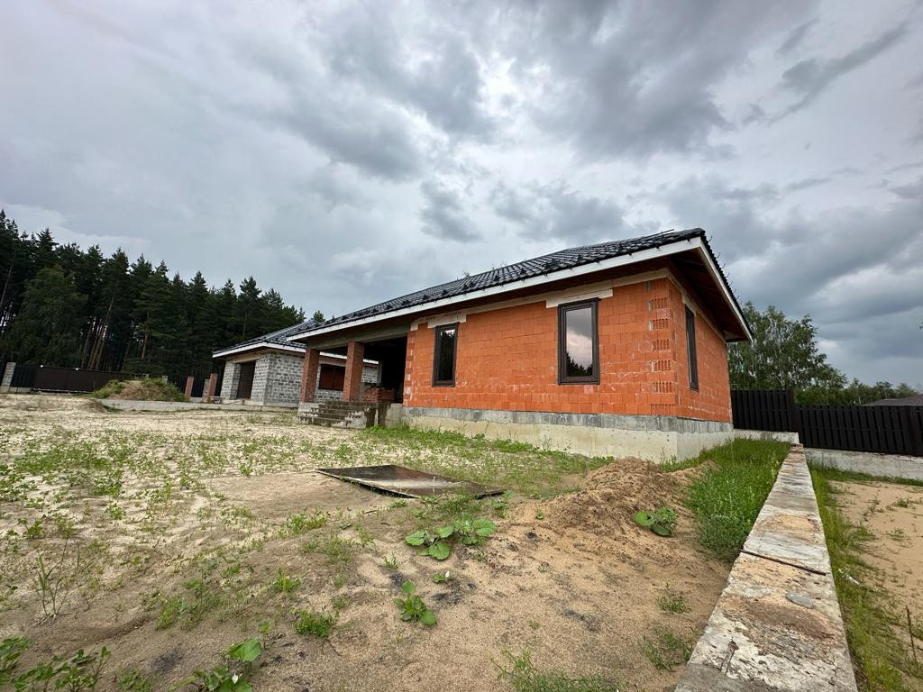 Дом под чистовую отделку: на первом этаже - холл, большая кухня-гостиная, бойлерная, санузел, гостевая комната и комната отдыха, на втором этаже - две спальни, санузел, третья спальня с санузлом и гардеробной 53 кв.м.