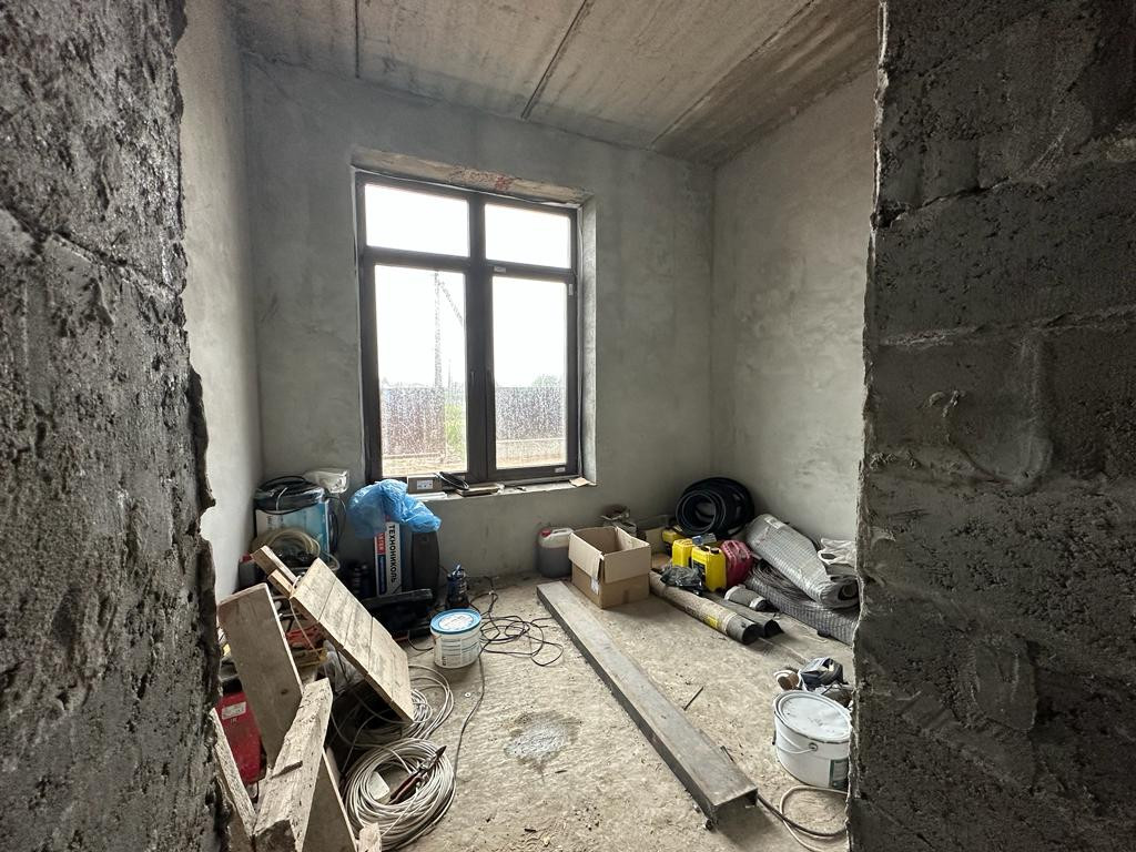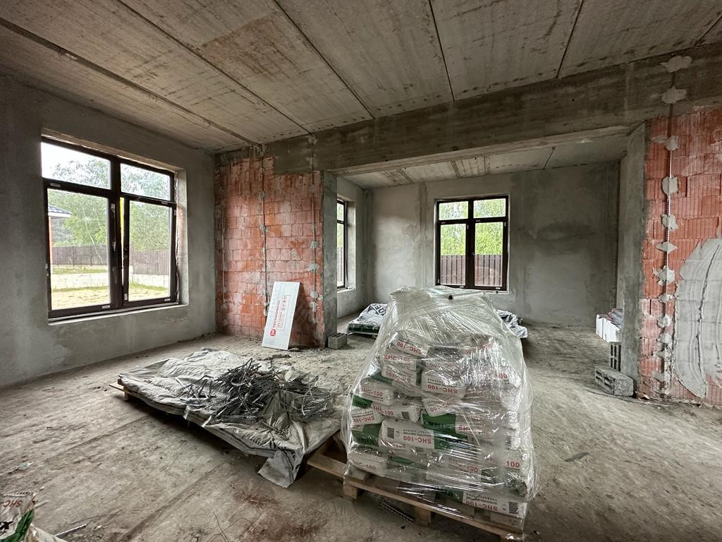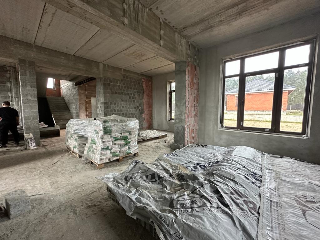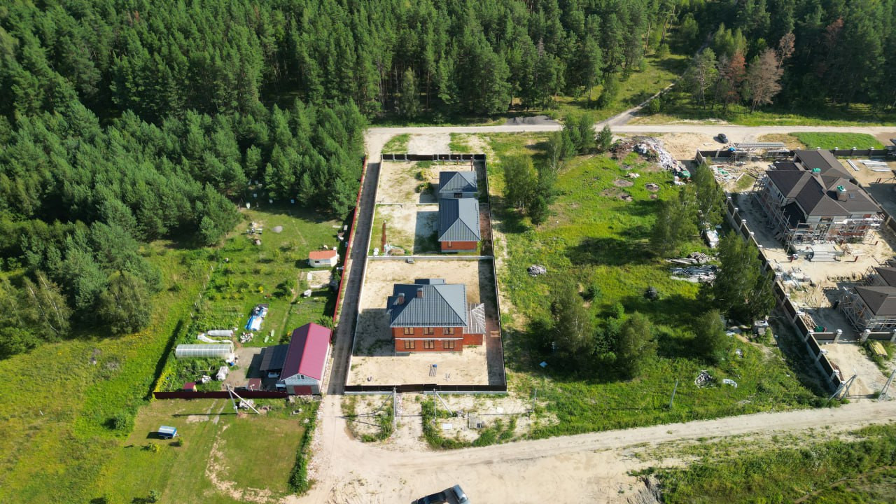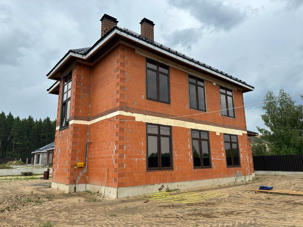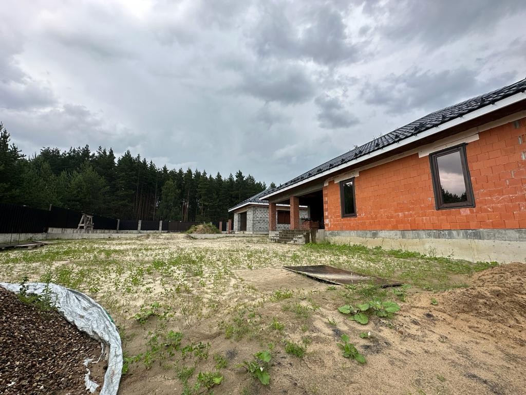 Дом под чистовую отделку: на первом этаже - холл, большая кухня-гостиная, бойлерная, санузел, гостевая комната и комната отдыха, на втором этаже - две спальни, санузел, третья спальня с санузлом и гардеробной 53 кв.м.