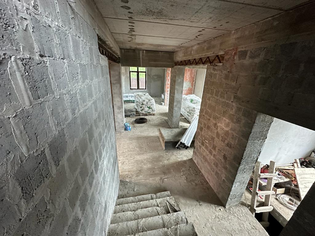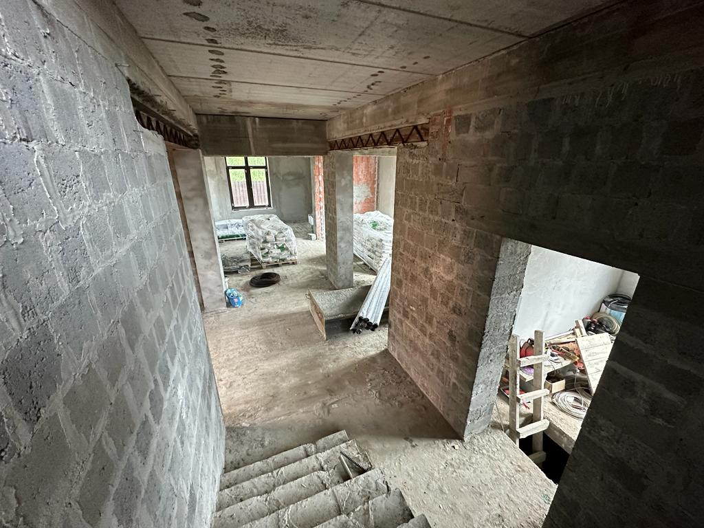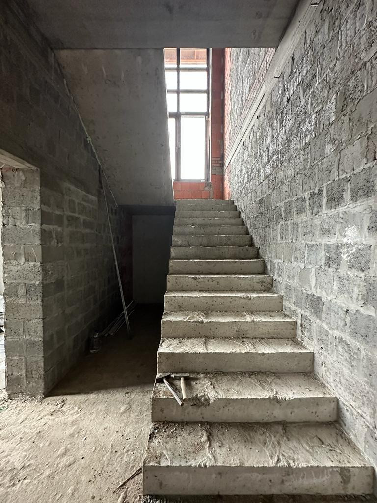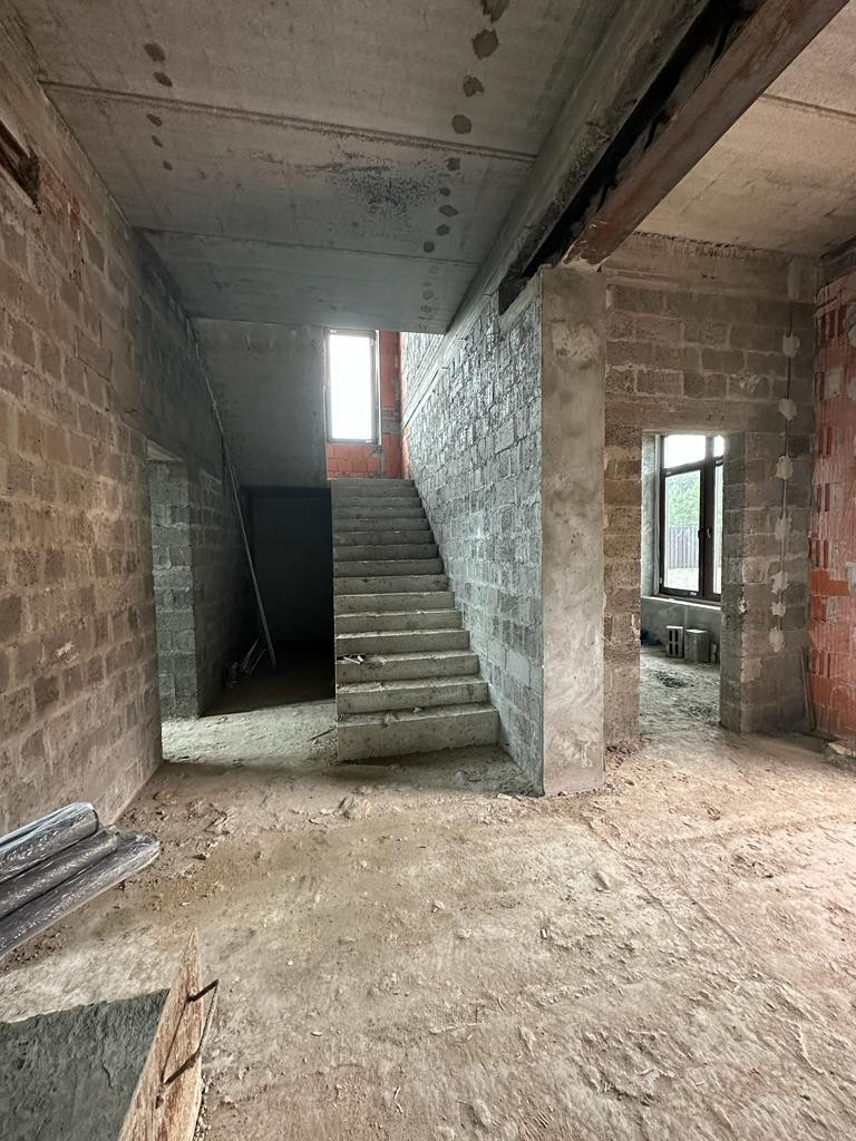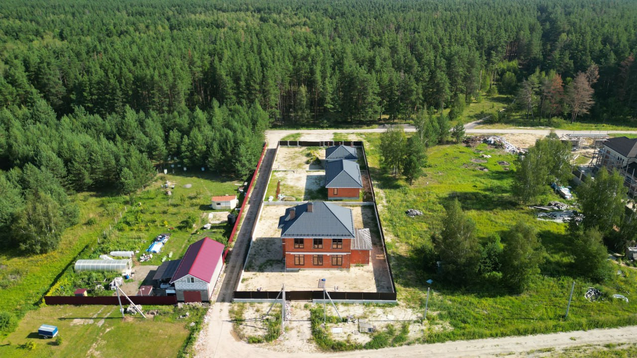 Дом под чистовую отделку: на первом этаже - холл, большая кухня-гостиная, бойлерная, санузел, гостевая комната и комната отдыха, на втором этаже - две спальни, санузел, третья спальня с санузлом и гардеробной 53 кв.м.