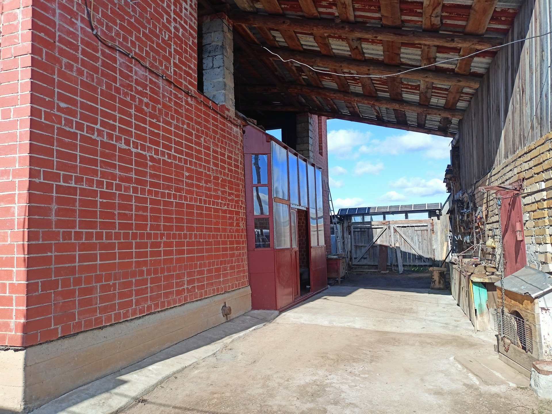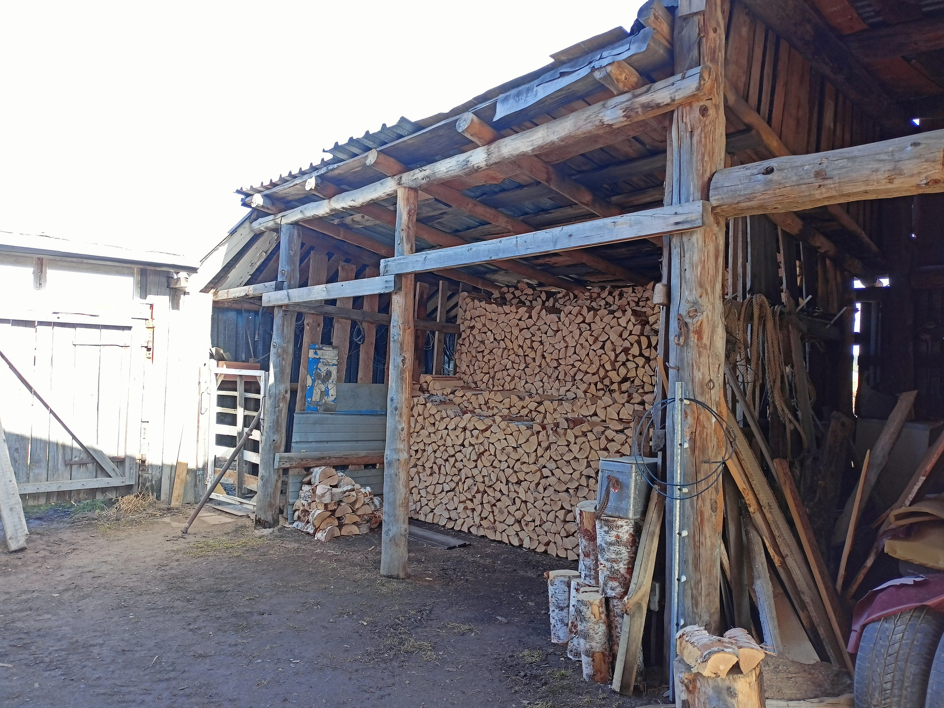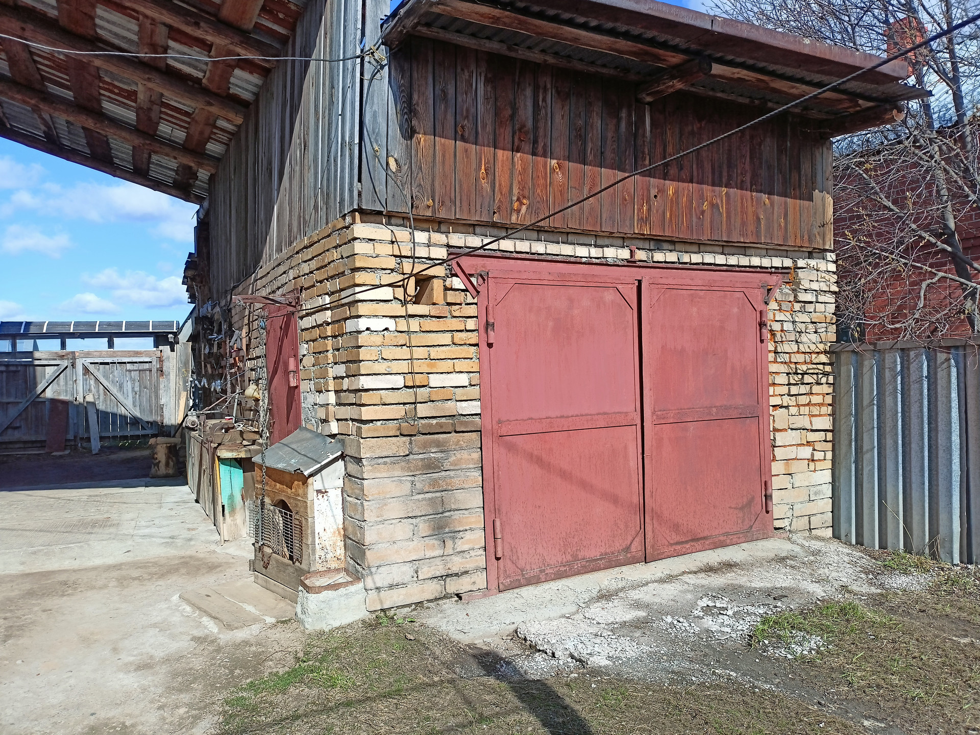 На участке также имеются: гараж с овощной ямой, дровеники, конюшня из бревна на фундаментных блоках, ранее использовалась конюшня для разведения свиней и кур, для кур есть специальный летний загон возле конюшни.