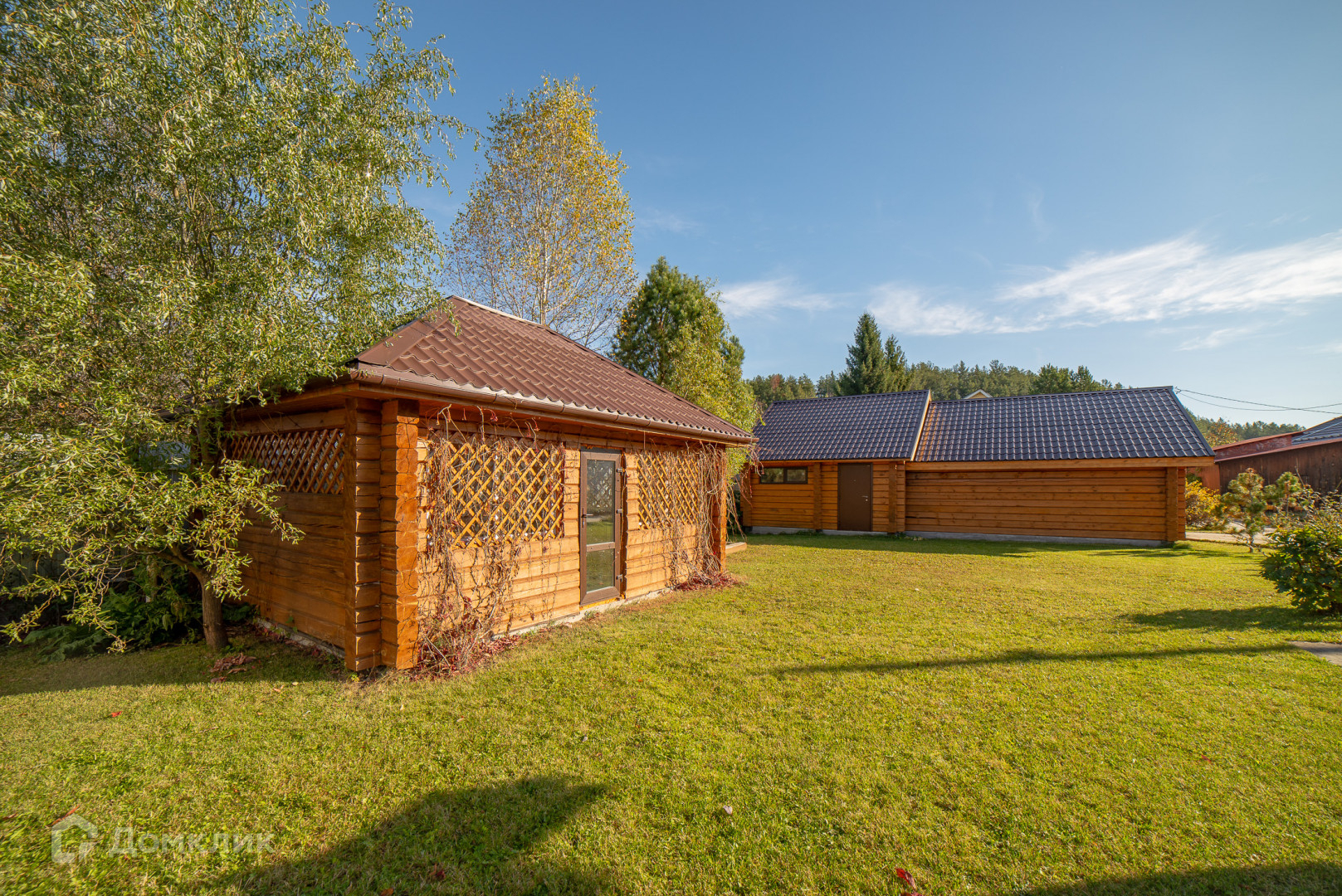 На участке два жилых дома, гараж с баней, беседка, мангальная зона, кирпичный гараж с пристроенным дровяником.