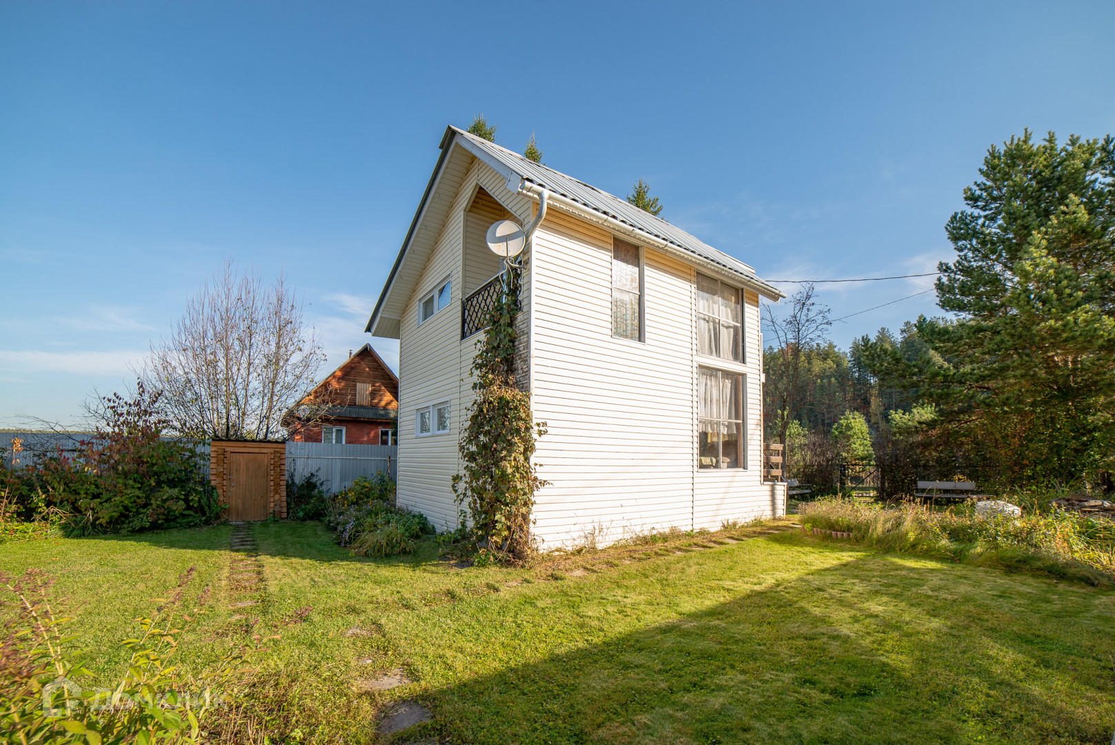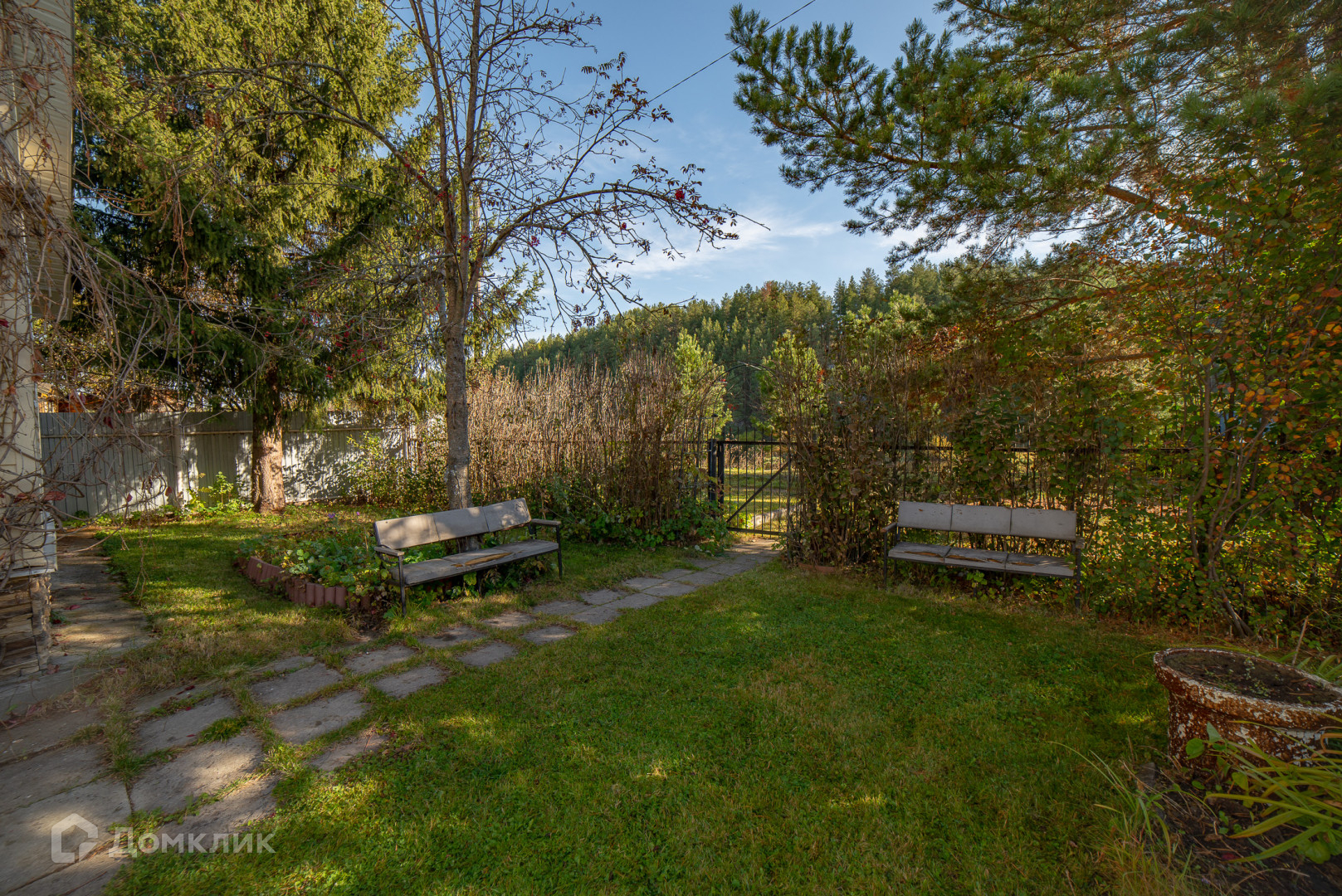 Участок облагорожен, взрослые растения, кустарники и деревья.