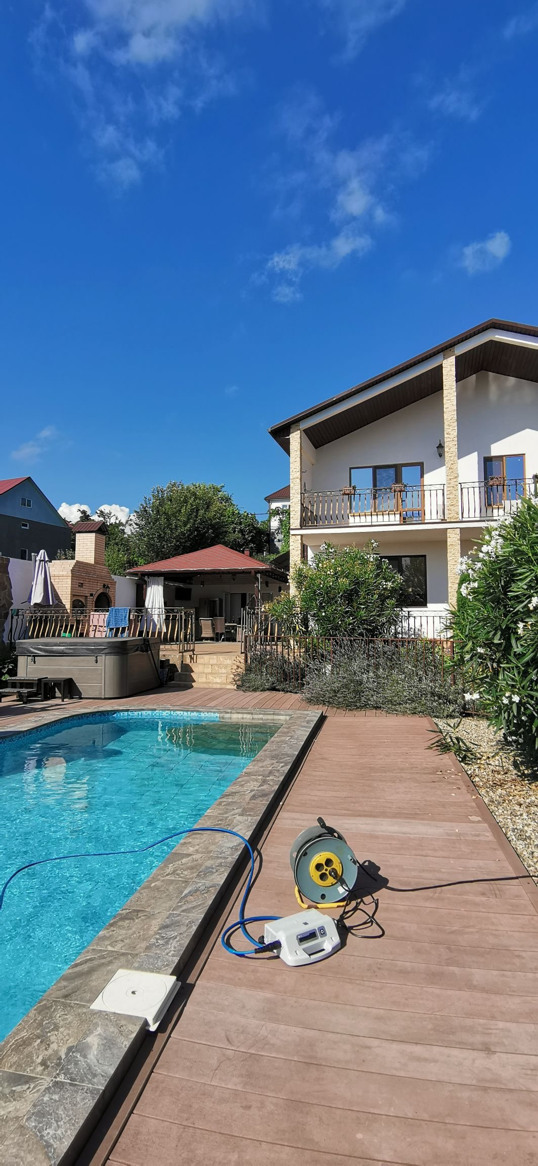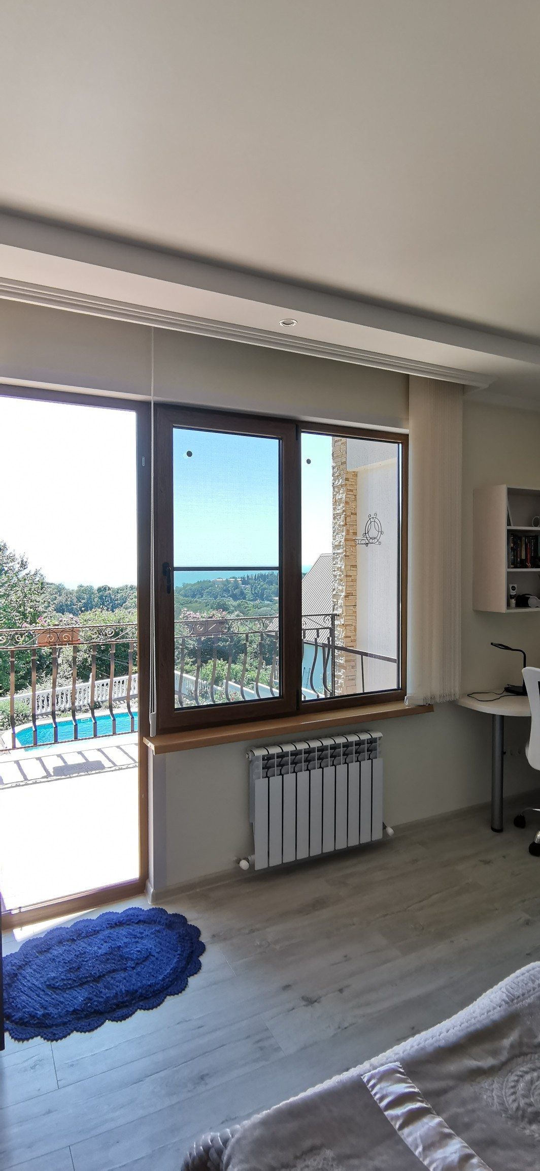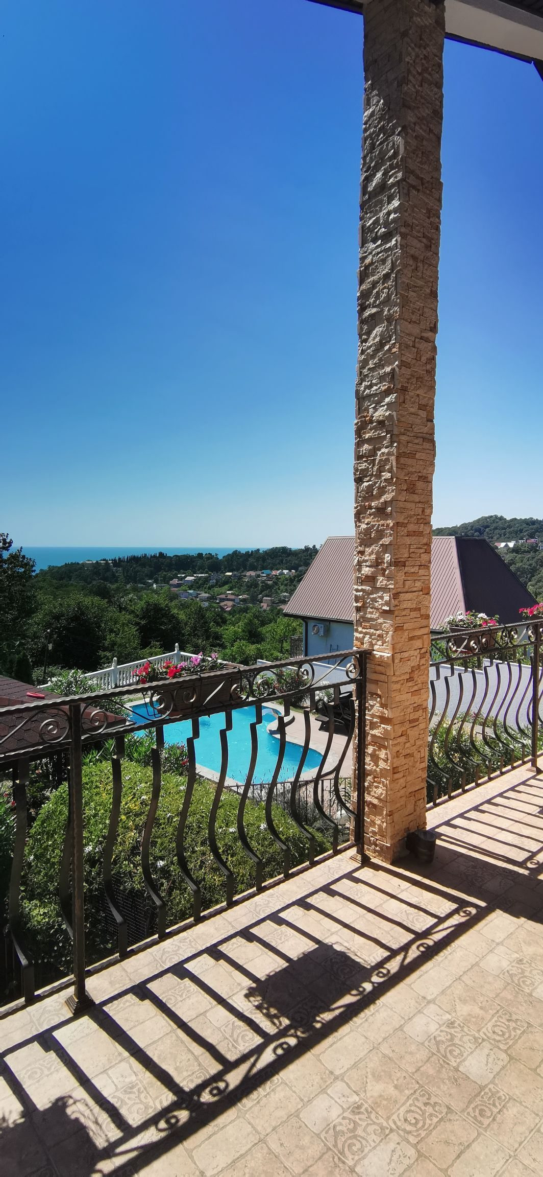Продам дом с видом на море. Дом 2017 года постройки.Участок облагорожен ,с красивыми насаждениями.Во дворе сделан навес под машину.На участке бассейн,баня,зона барбекю. В доме на первом этаже кухня-гостинная ,туалет,ванная комната,кабинет.На втором этаже три спальни в одной из них ванная комната.Отдельно гардеробная комната.С двух комнат  выход на террасу.Участок угловой ,тихое спокойное место,рядом живут хорошие соседи.