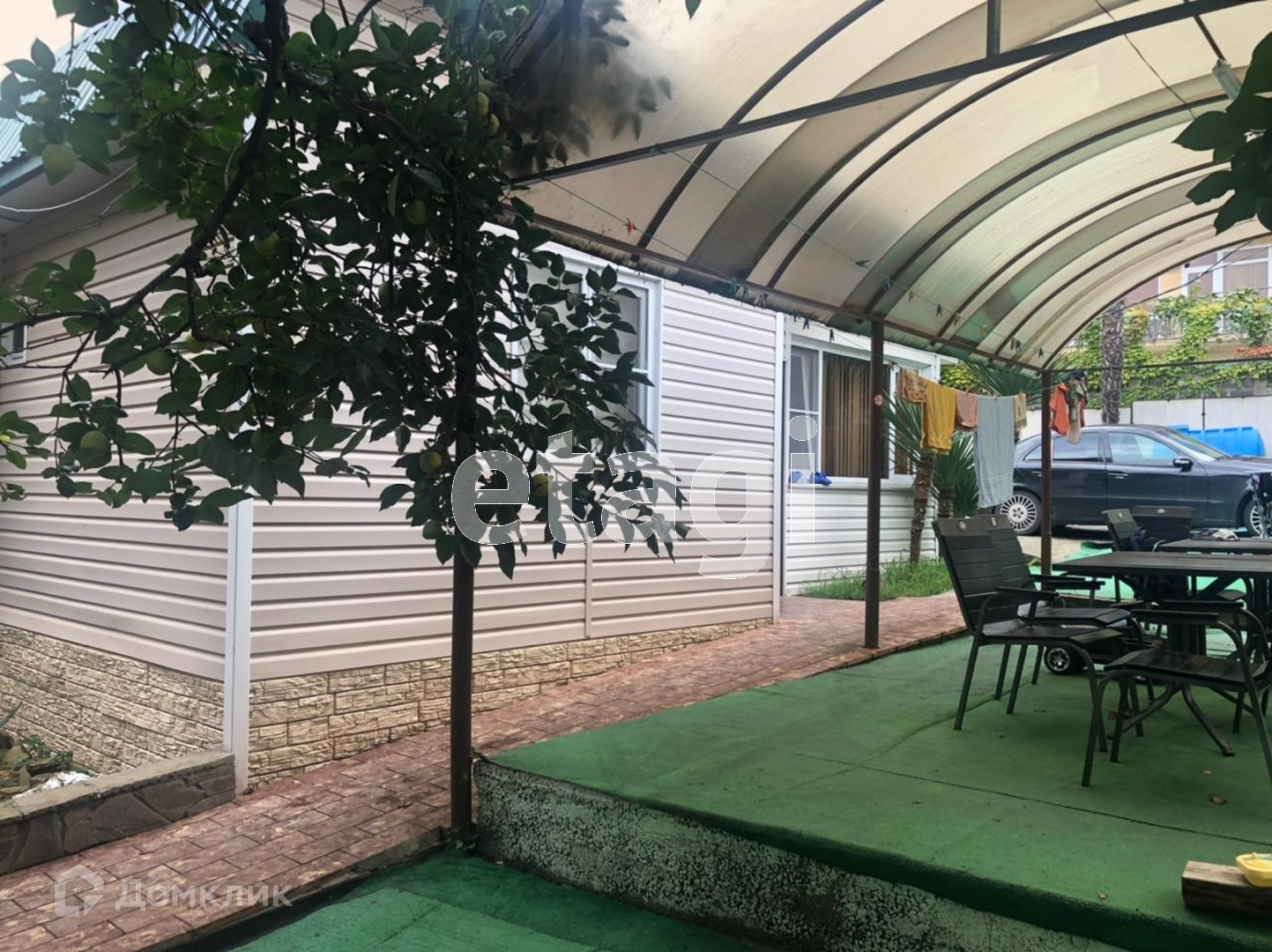 На придомовой территории есть плодовые деревья. Беседка и стоянка для автомобиля.