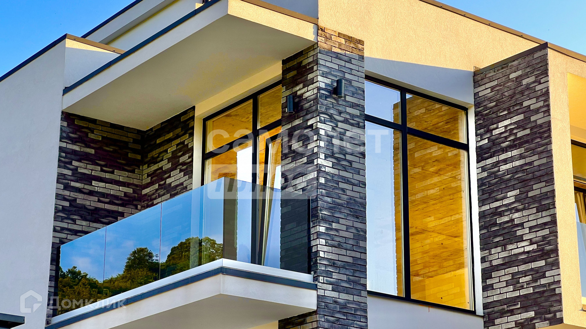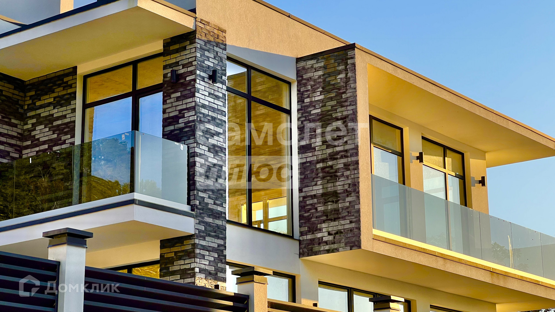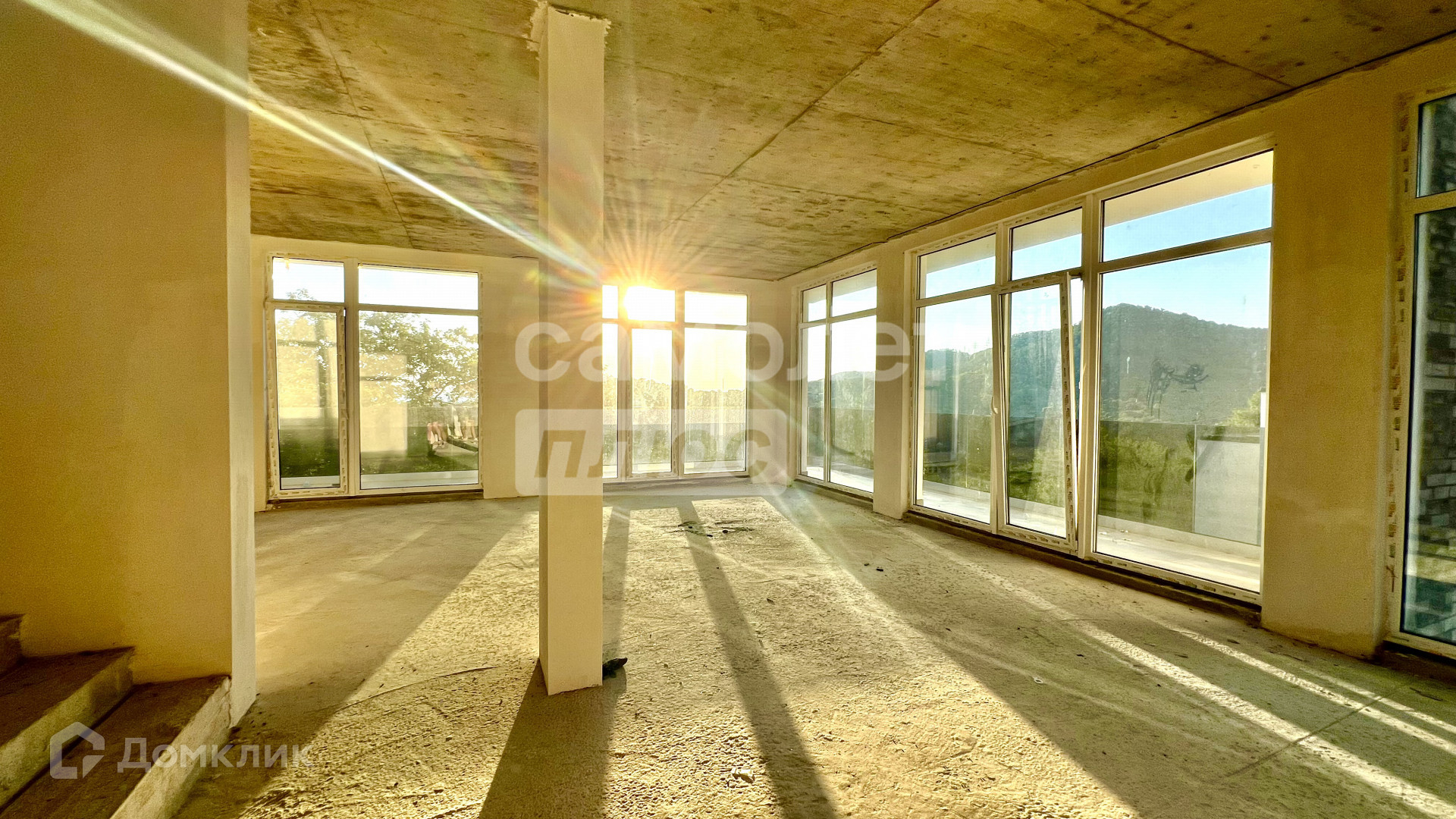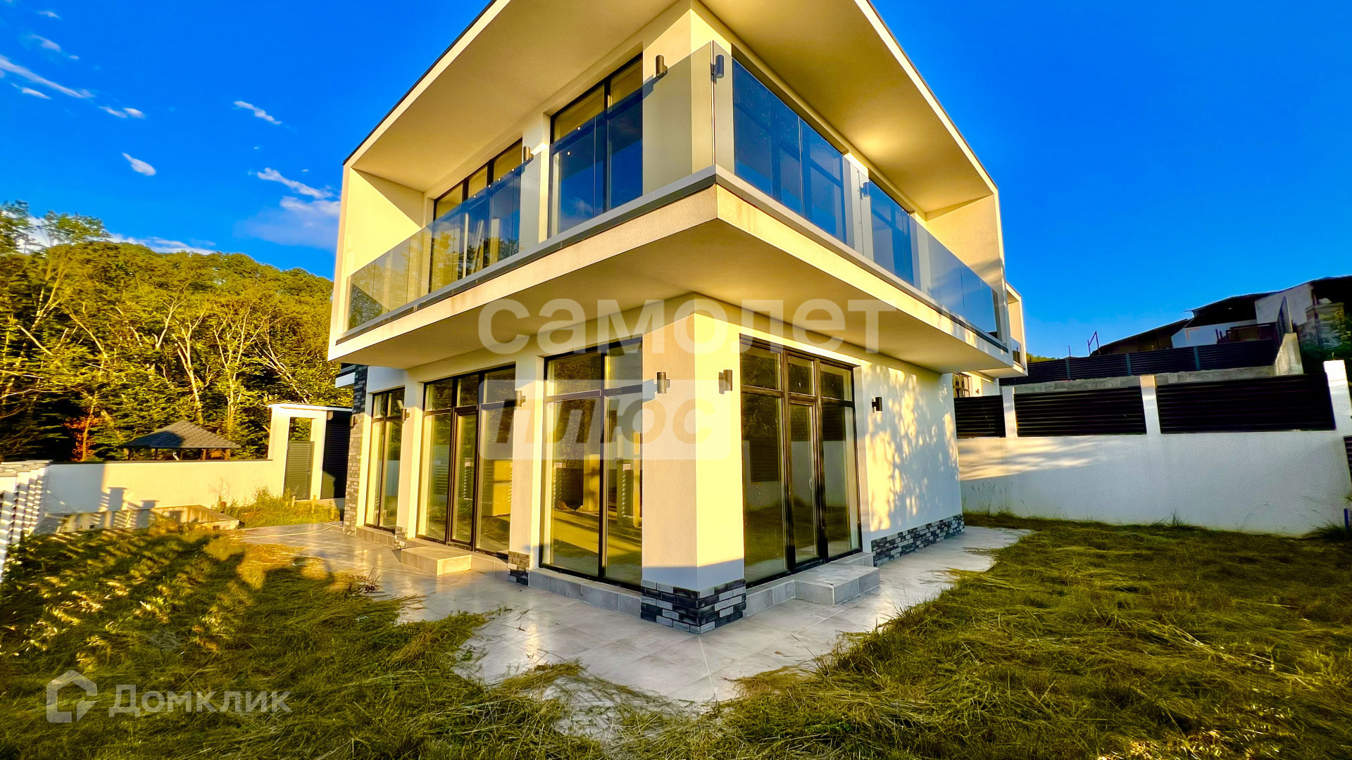 Внутри дома пред чистовая отделка с заведенными коммуникациями. на всех этажах панорамные окна в пол. На первом этаже есть 3 выхода на территорию дома.