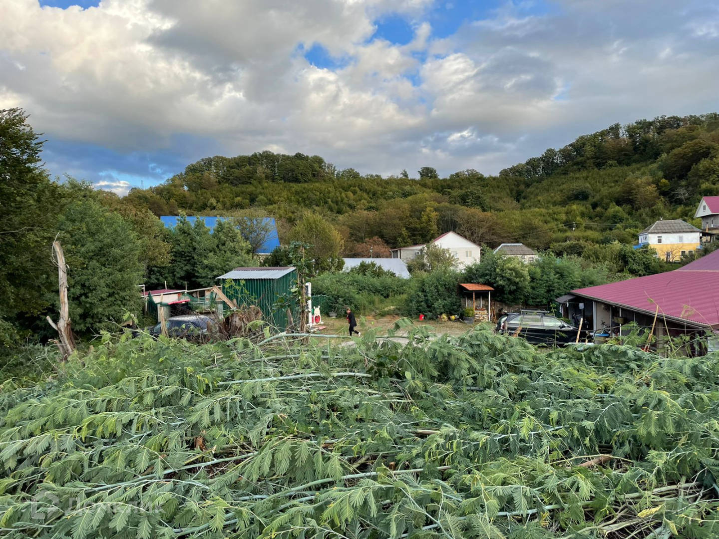 Общая площадь - 10,5 соток, назначение земли - лпх. Коммуникации либо проходят по границе, либо подключены. Локация - тихая, зеленая, с видом на горы. В 2 шагах от участка находится автобусная остановка, в районе есть магазины. Вокруг находится частная застройка, спокойный район. Дом граничит с зеленым массивом леса. Прекрасный вариант для постройки своего жилья на природе в минутной доступности от моря.