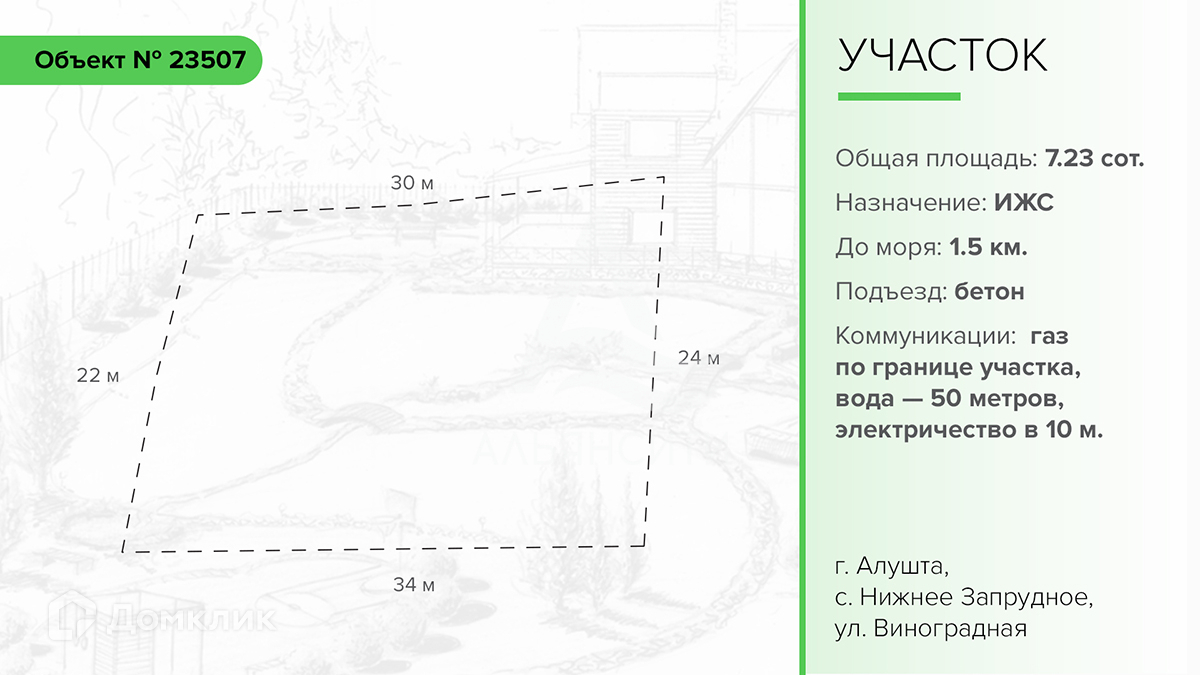 Продается земельный участок в городе Алушта, село Нижнее Запрудное, улица Виноградная. Площадь участка: 7,23 сотки. Вид разрешенного использования – индивидуальное жилищное строительство.