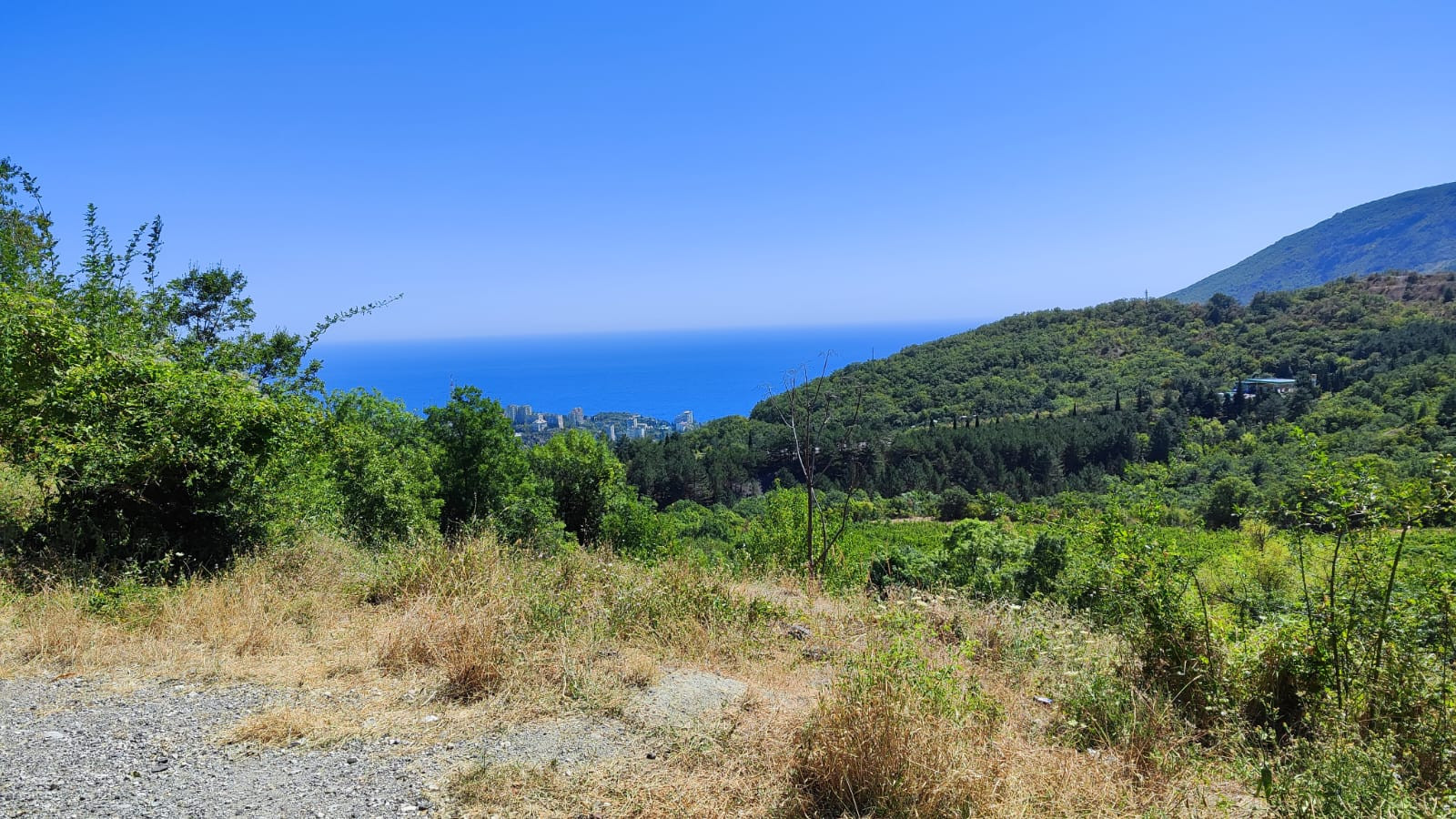Хорошая локация, асфальтированный подъезд, не перекрываемый вид на море, виноградники.