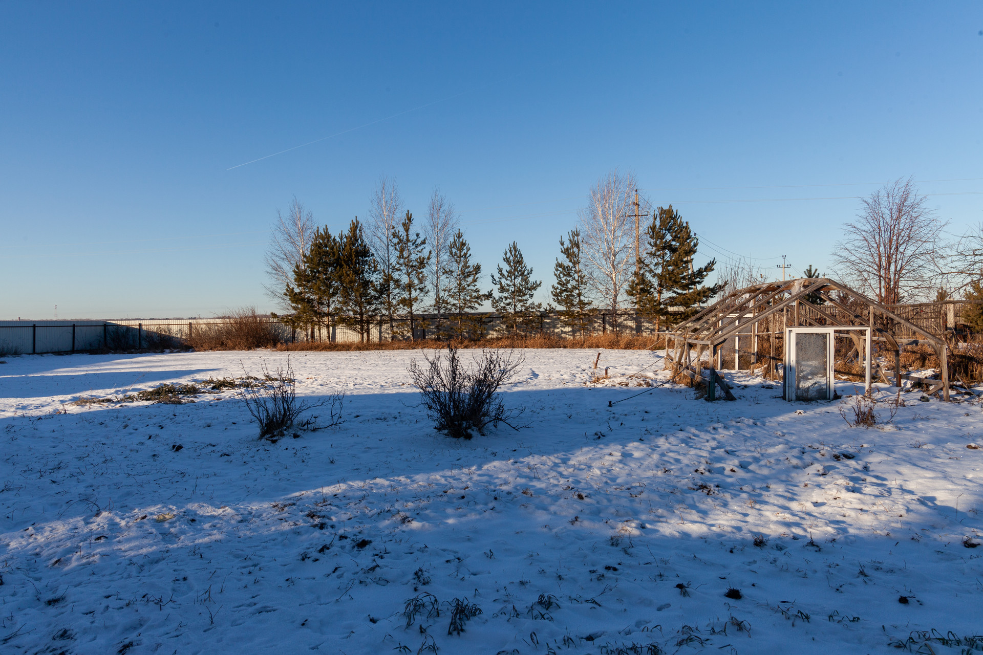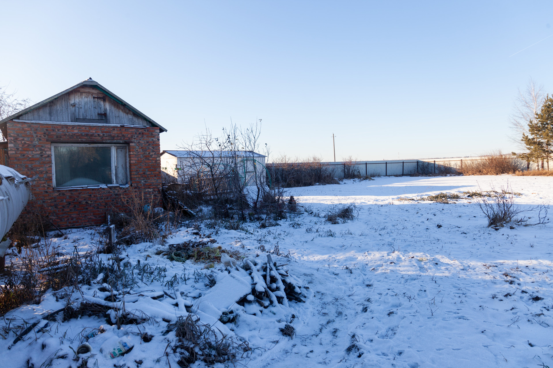 Большой и плодородный участок 18 соток, на котором расположены огород, дворик и небольшой домик (тамбур и две комнаты), сейчас там проживают курочки, но в перспективе можно организовать и гостевой домик и летнюю кухню. Вдоль забора растут кедровые культуры, из посадок на участке имеется смородина, вишня, яблоня.
