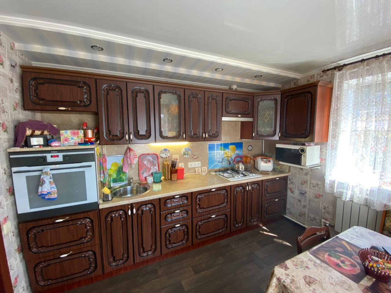 Светлая, уютная кухня - мечта многих женщин. Варочная панель, духовой шкаф и мебель остается для новых владельцев приятным бонусом.