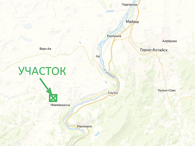 Продаётся отличный земельный участок в селе Нижнекаянча на берегу реки Каянча, в отличной локации - в самом сердце туристической зоны Алтая.
