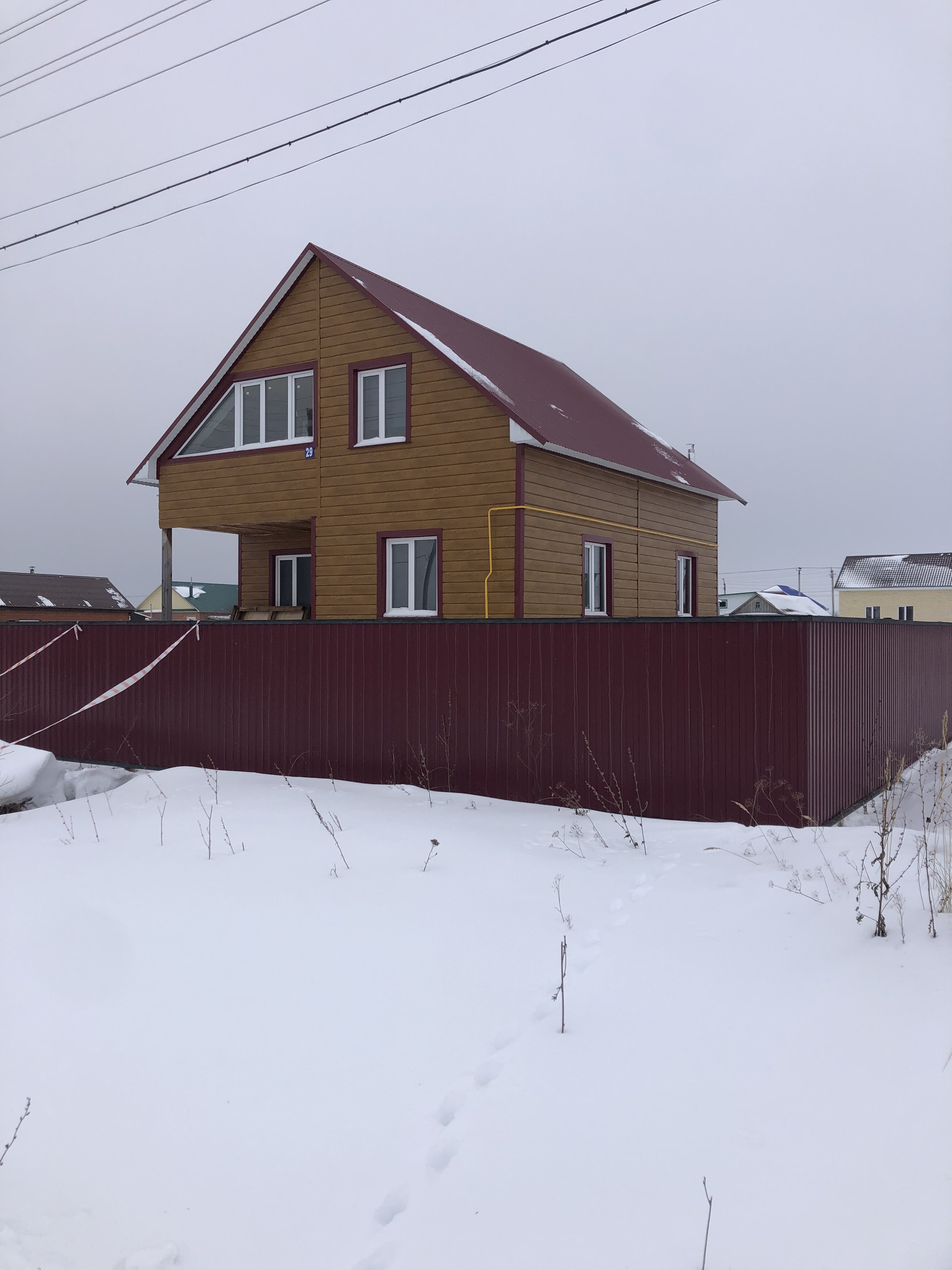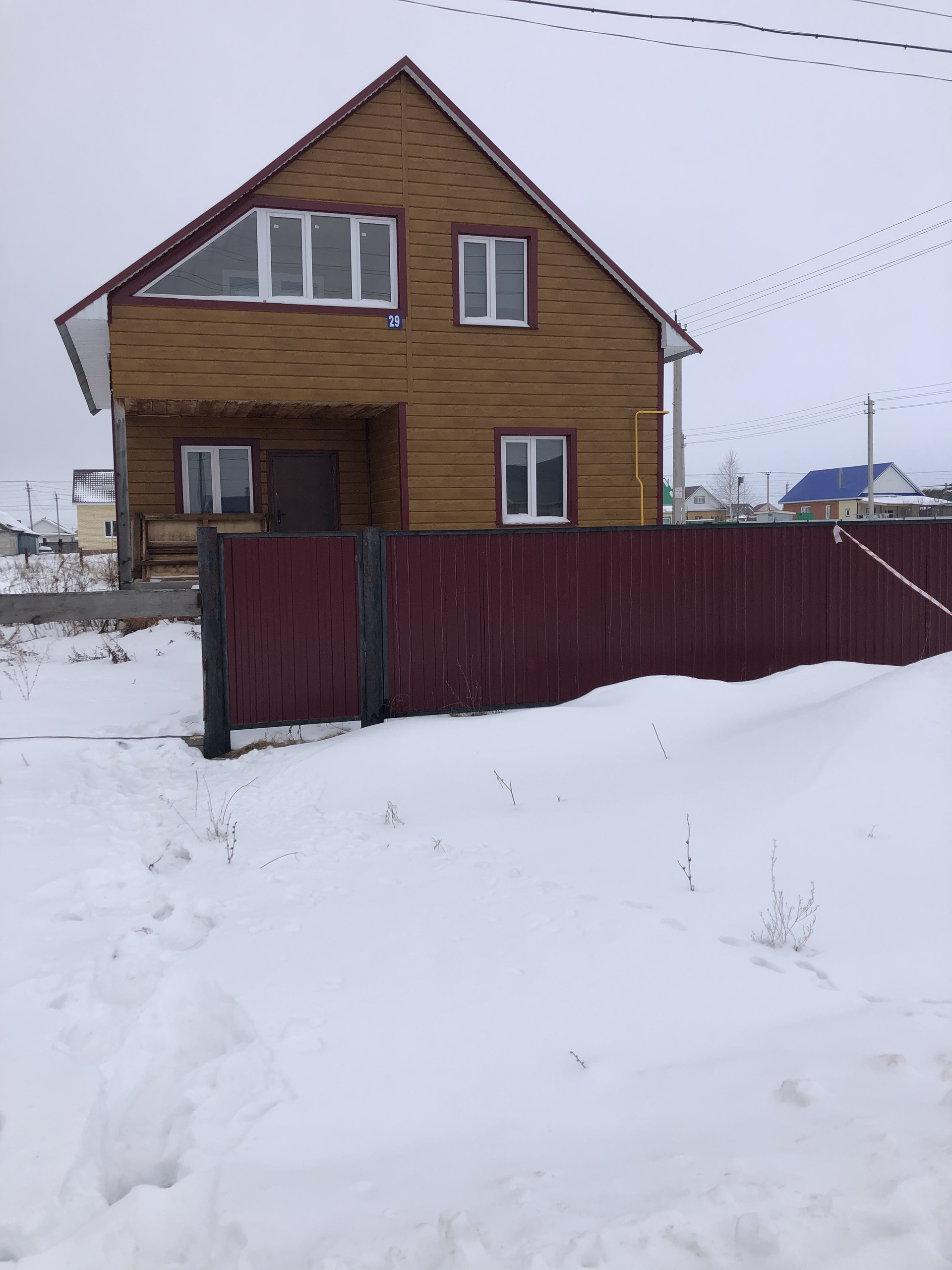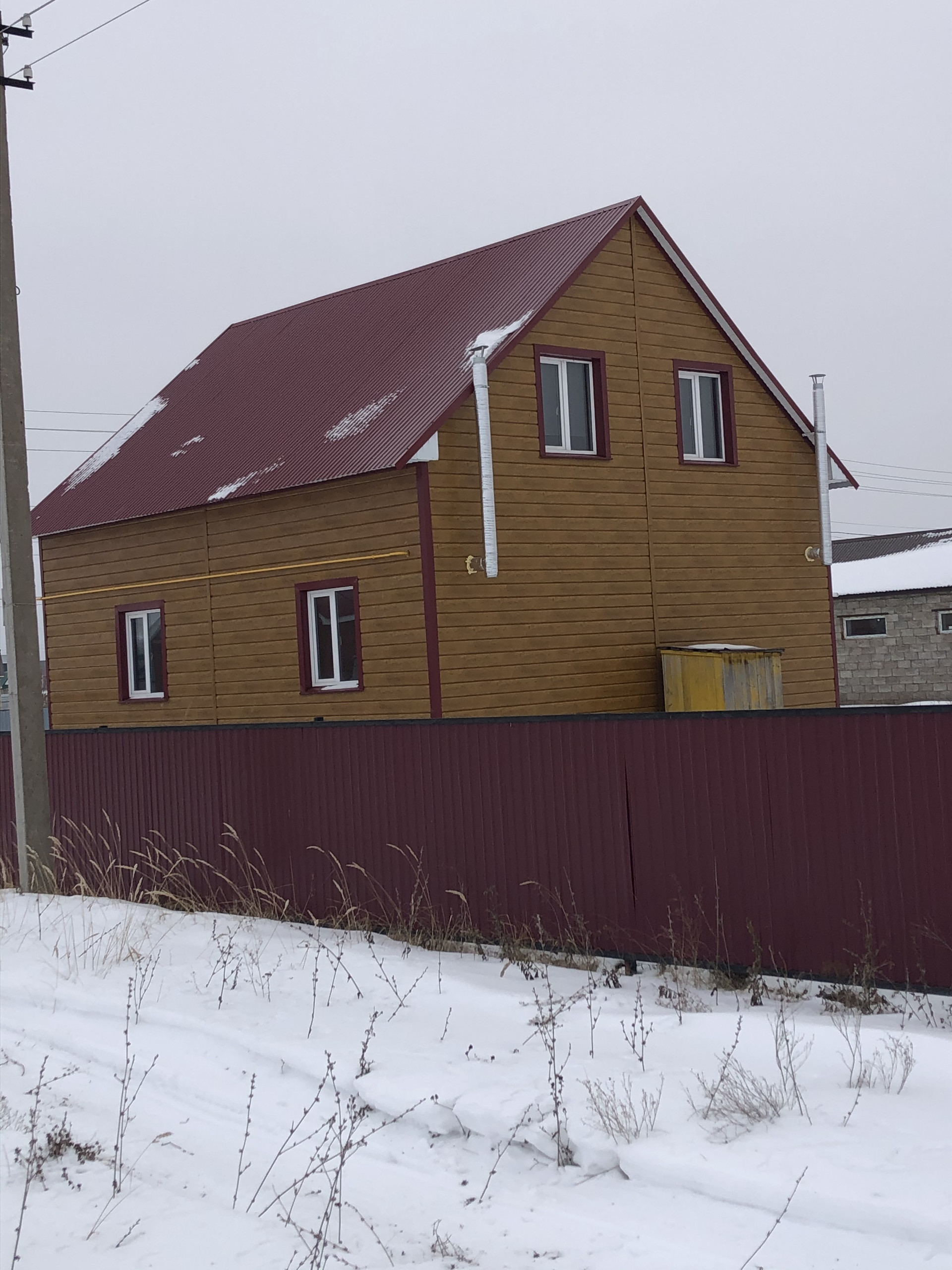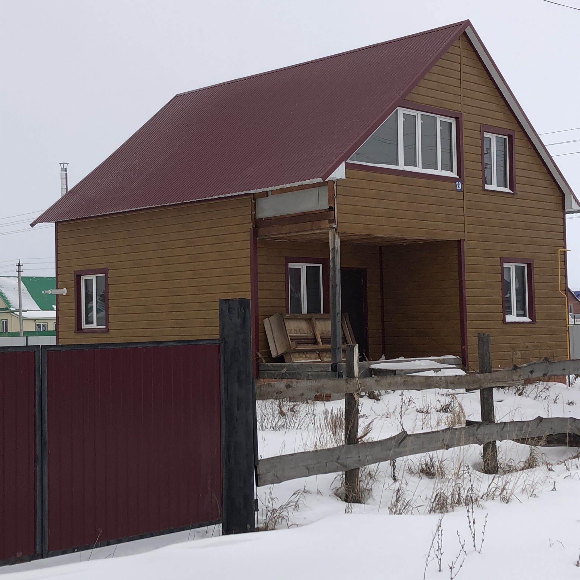 Второй этаж обшит евровагонкой, дом огорожен профнастилом, проведён газ. Торг уместен.