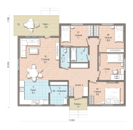 Общая площадь 130 м2