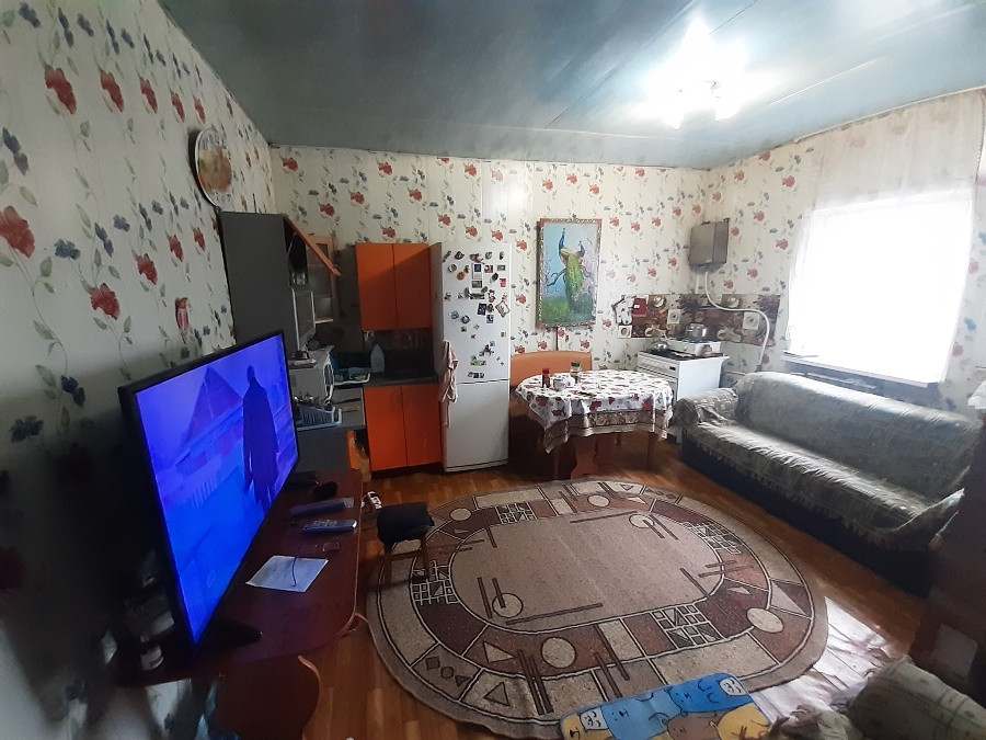 Ленточный фундамент. Дом из бруса, обшит сайдингом. Крыша и забор - профнастил. В доме 2 изолированные комнаты + кухня гостиная. Просторный чердак, в нем легко можно разместить и оборудовать 2 этаж. Туалет в доме, душевая в баньке)