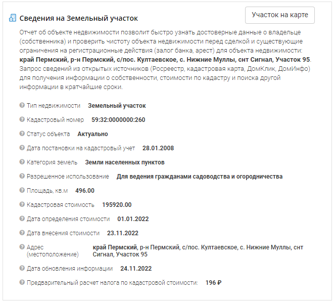 Кадастровый номер участка 59:32:1320001:243, кадастровый номер землепользования 59:32:0000000:260