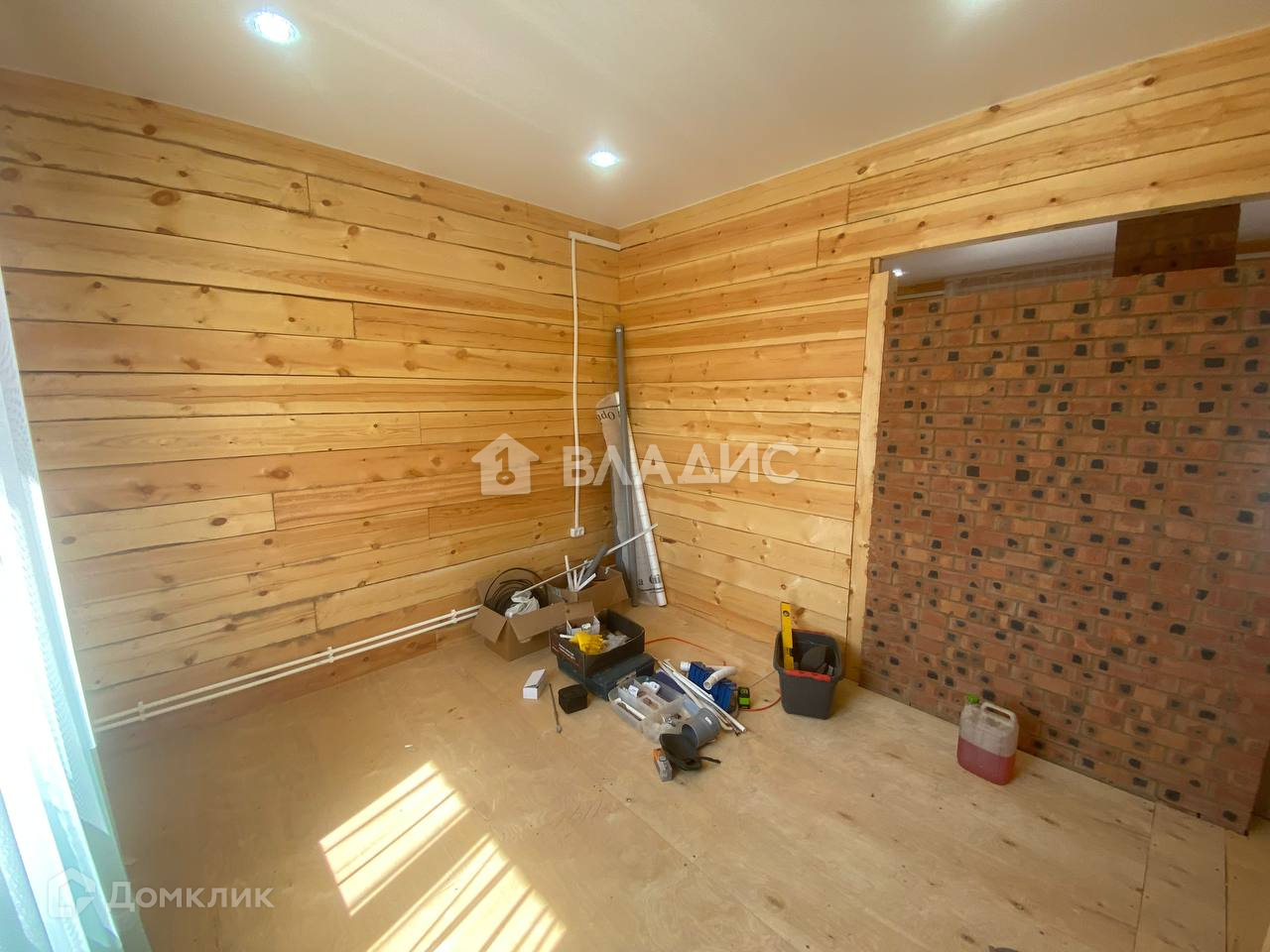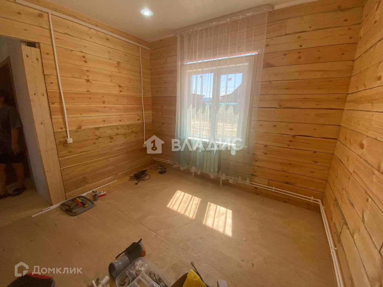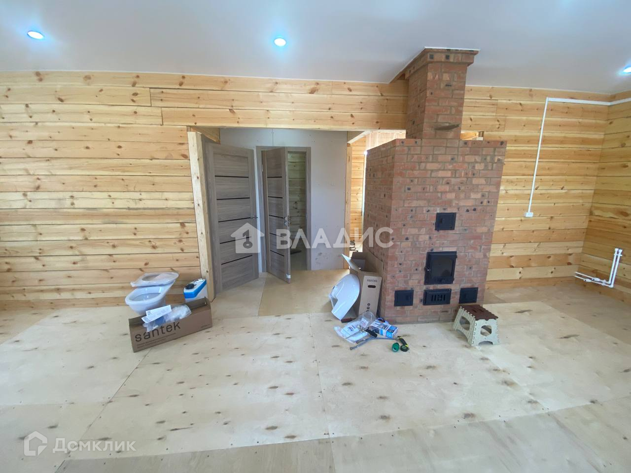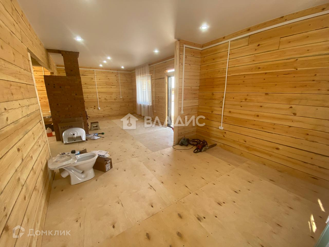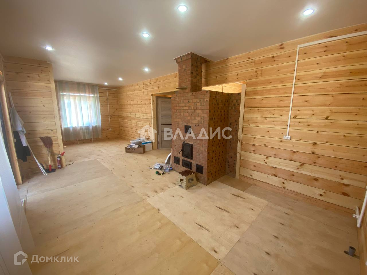Ремонт без отделки, но зато есть натяжные потолки, на полу фанера.