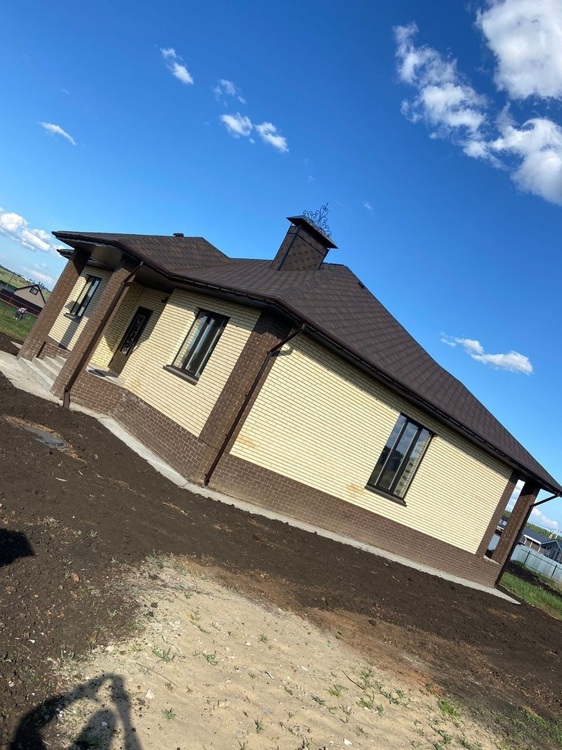 Материал стен: газобетон обложенный кирпичом, крыша мягкая черепица.