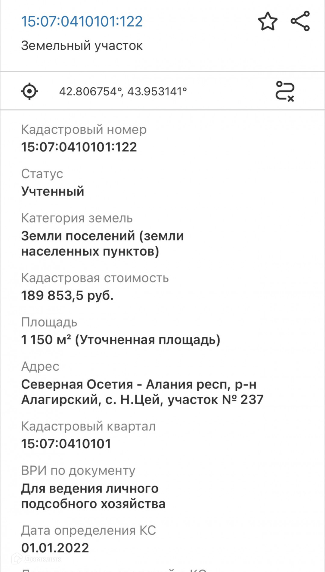 Стоимость недвижимости: